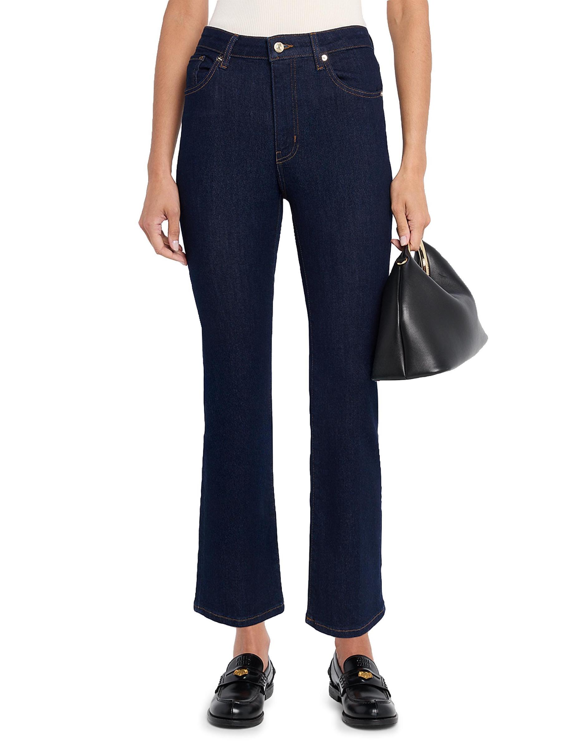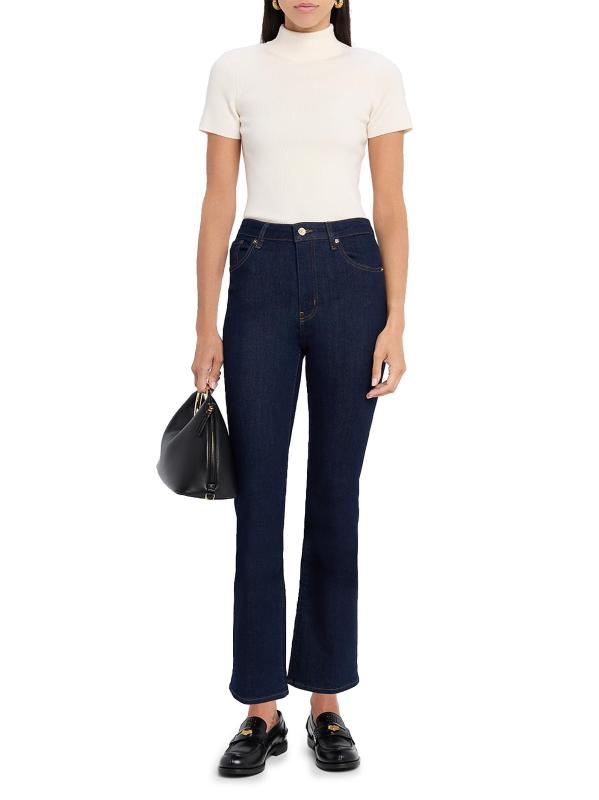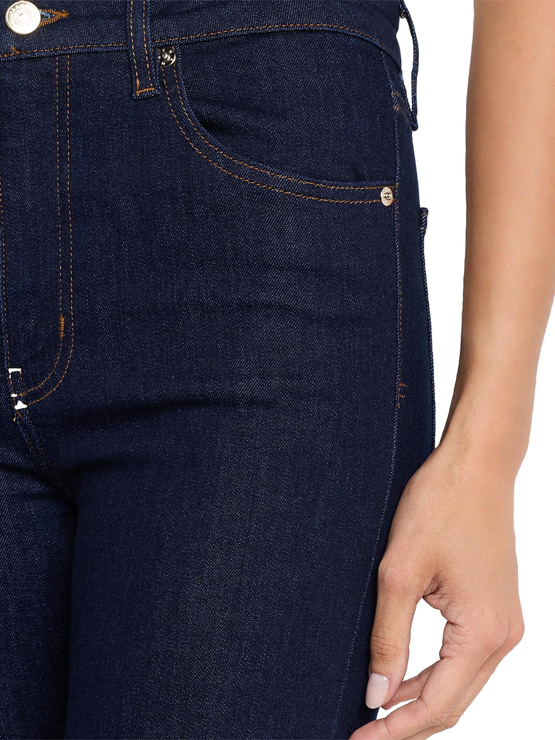 يُبرز بنطال جينز ريبوت من فريم، المصنوع من الدنيم المرن، صورة ظلية قصيرة ومضيئة. يتميز هذا الزوج الشاهق بتصميم كلاسيكي بخمسة جيوب.