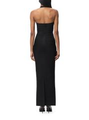 تم تزيين فستان The Reina من Hervé Léger بتفاصيل كريستالية على الصدر. صُممت هذه القطعة لتنعيم الشكل بتفاصيل ضمادة مميزة، وتتميز بتقويرة واسعة وتنورة عمودية ضيقة.