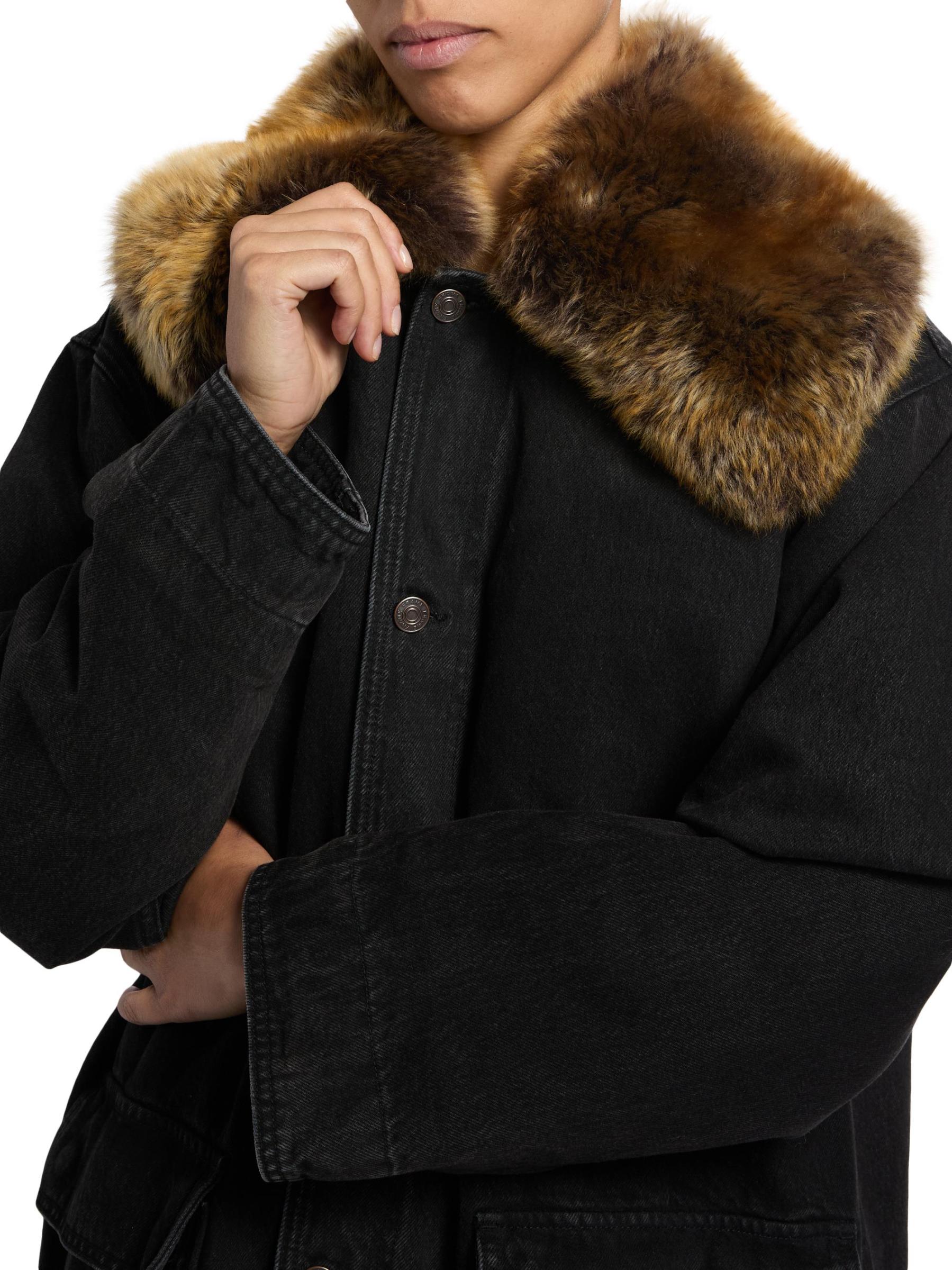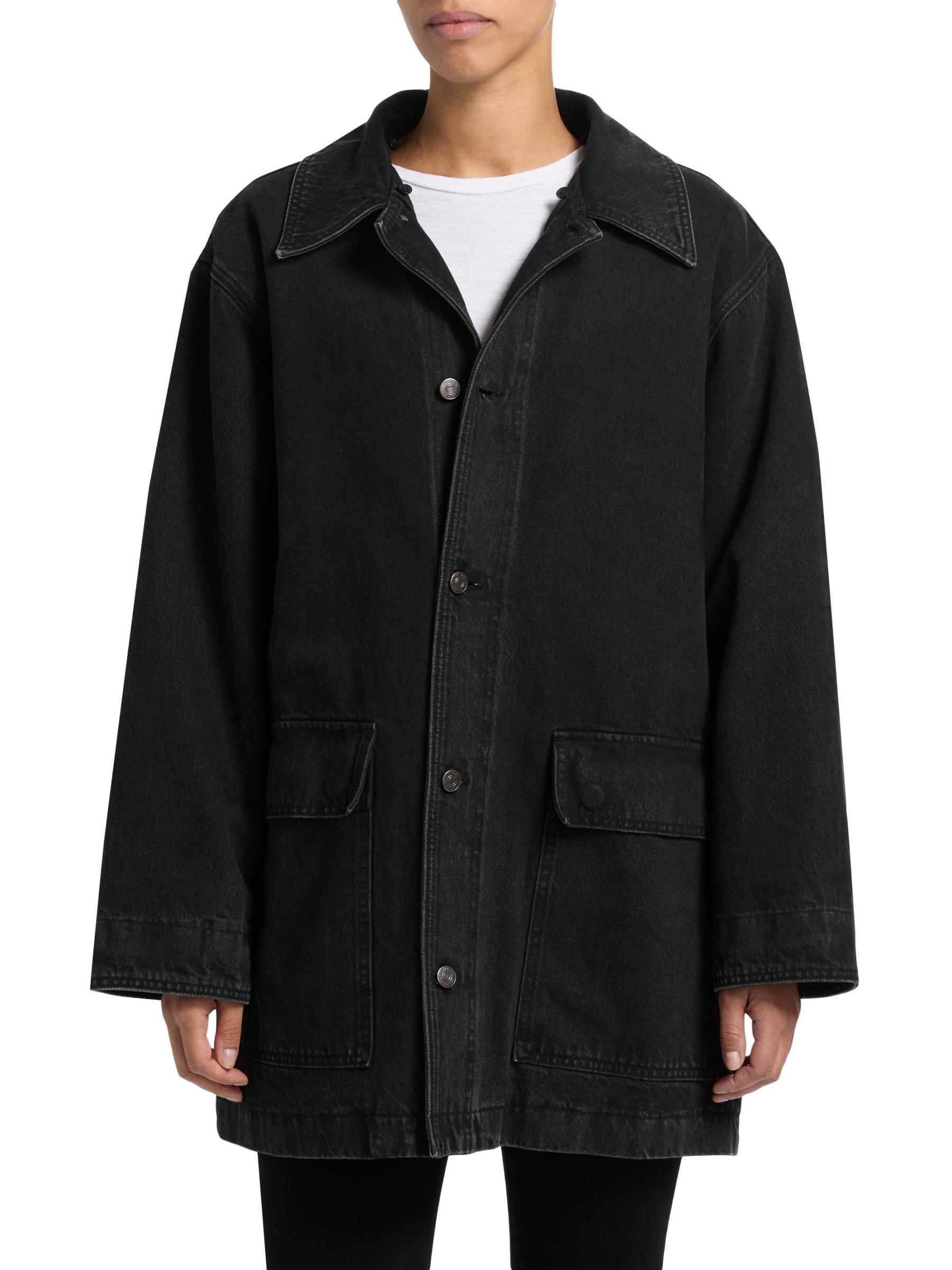 هذا المعطف من Frame مصنوع من القطن المنسوج ويتميز بياقة شيرلينغ كبيرة الحجم.