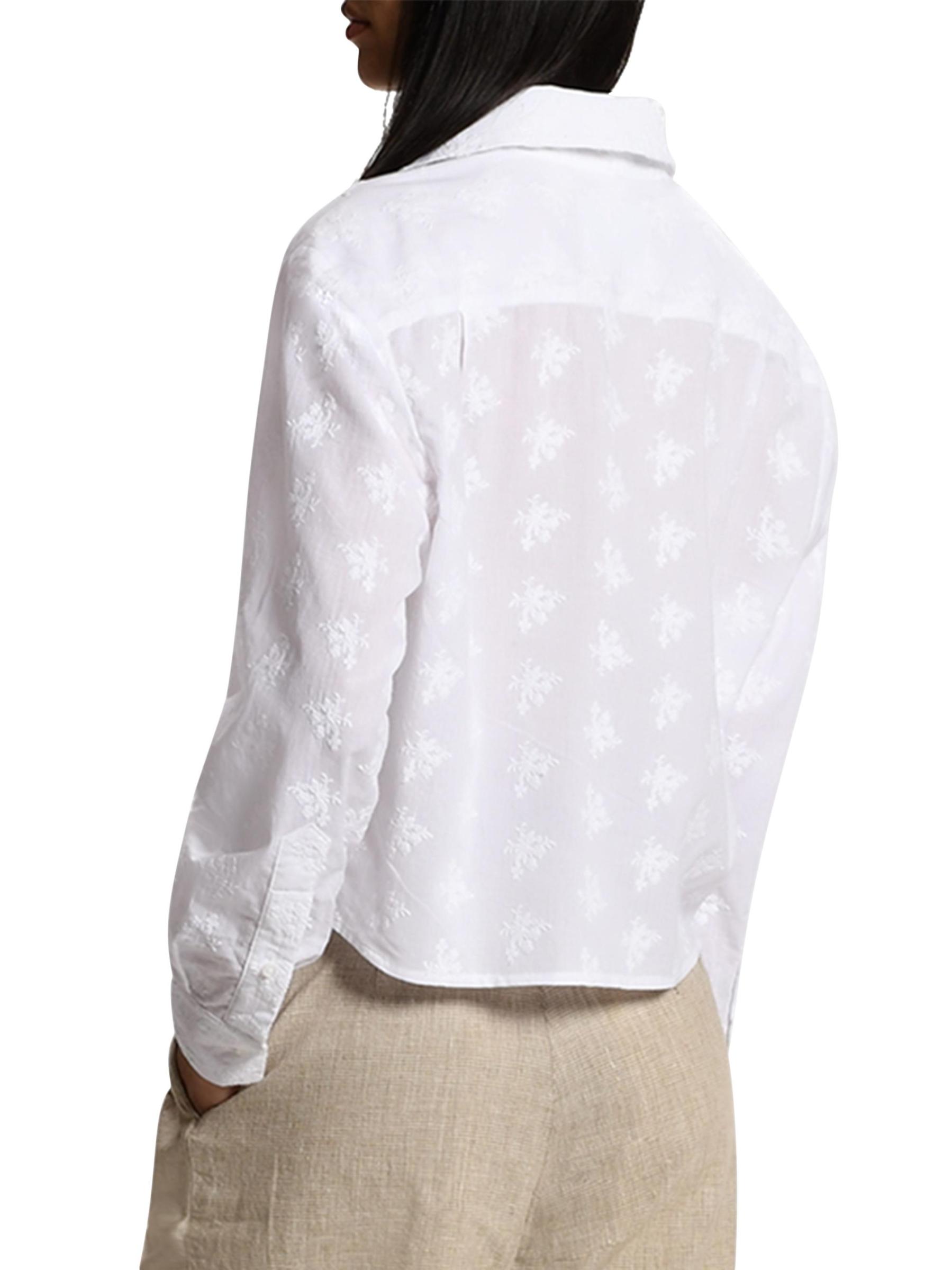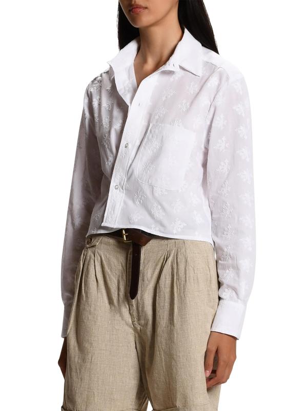 قميص Shorty من Cissa مصنوع من القطن الشفاف مع تطريز الأزهار بدرجات ألوان مختلفة وتم تصميمه في صورة ظلية قصيرة بأزرار أمامية.طوق سبريد أساور بأزرار بأكمام طويلة جيب خارجي على الصدر إغلاق بأزرار أمامية قطن تنظيف جاف صُنع في الولايات المتحدة الأمريكية