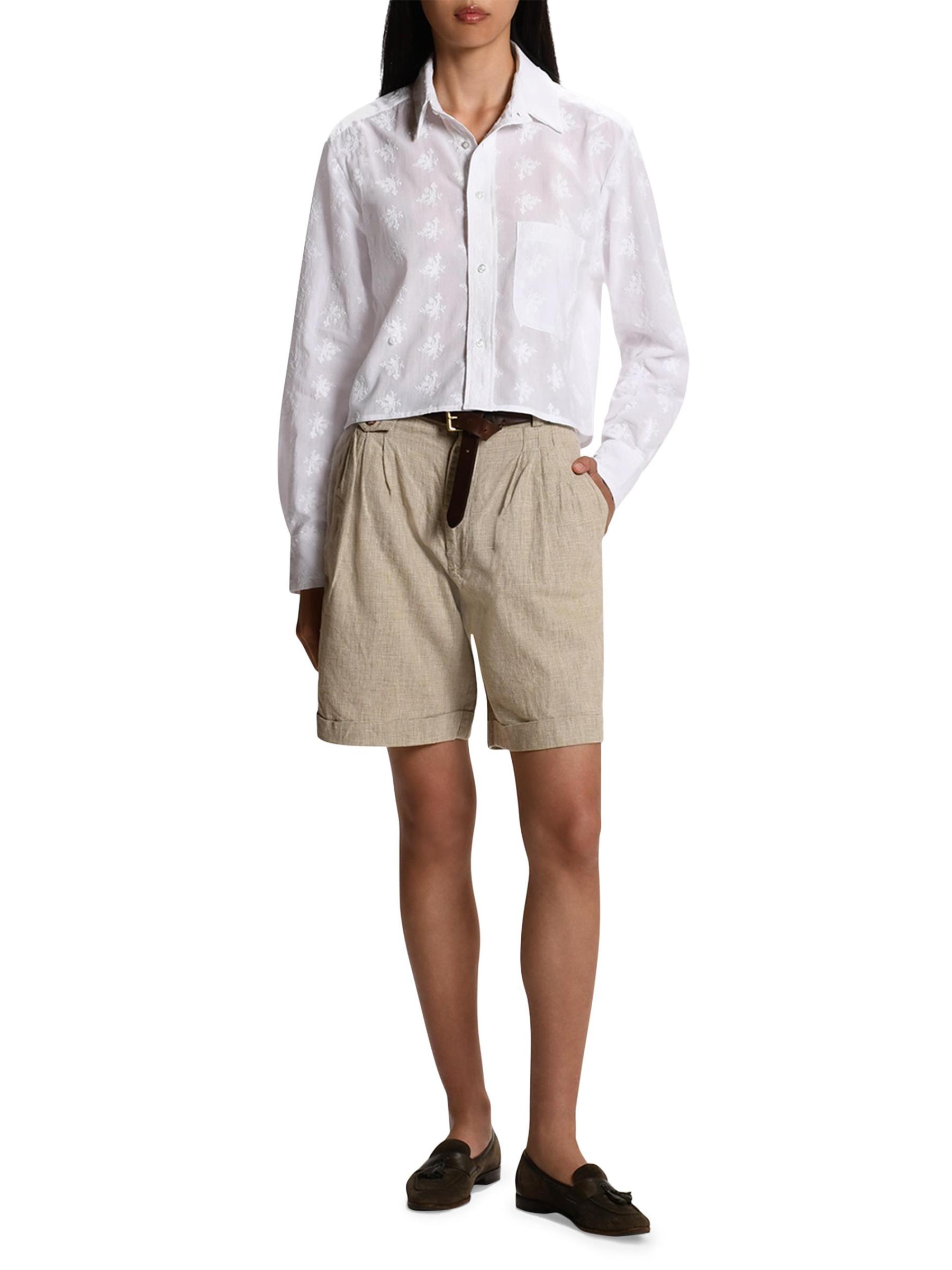 قميص Shorty من Cissa مصنوع من القطن الشفاف مع تطريز الأزهار بدرجات ألوان مختلفة وتم تصميمه في صورة ظلية قصيرة بأزرار أمامية.