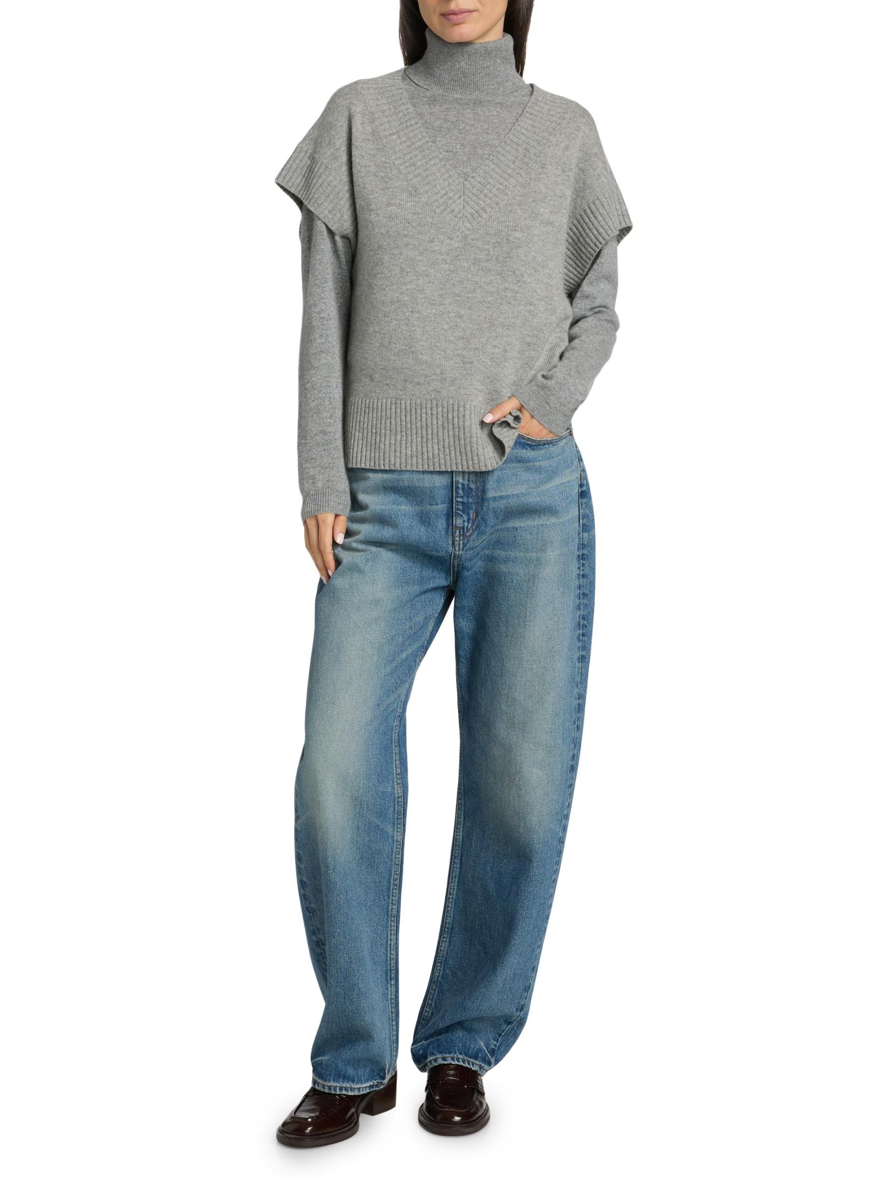 تتميز سترة The Sweater الصندوقية من Jamie Haller بمزيج من الصوف الناعم والكشمير، مما يضفي إحساسًا رقيقًا باليد. تتضمن هذه القطعة تقويرة على شكل حرف V وحواف محبوكة على شكل أضلاع وأكمام واسعة وقصيرة.