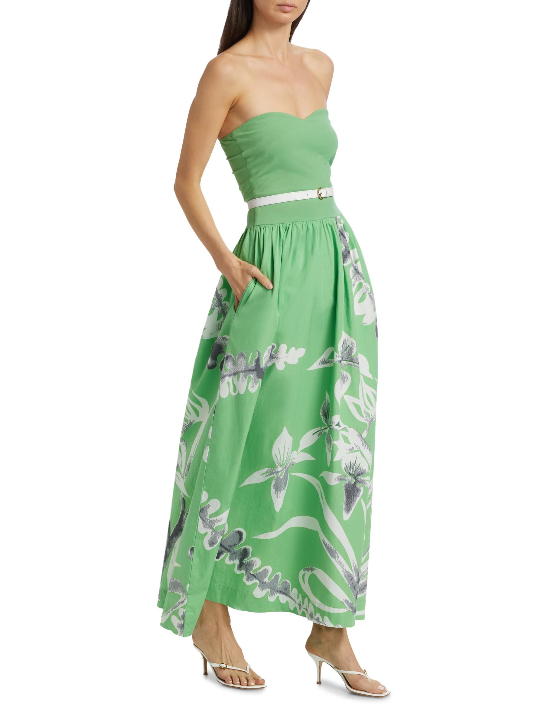 من مجموعة هذه المرة. يُبرز هذا الفستان الطويل من SWF تصميمًا منقسمًا، ويتميز بصدّار متين برقبة على شكل قلب وتنورة منقوشة مع جيوب جانبية.مصنوع من القطن العضوي رقبة على شكل قلب بدون حمالات حزام قابل للإزالة جيوب جانبية سهل الارتداء قطن عضوي بنسبة 100%، باستثناء الزخرفة البطانة: 95% قطن عضوي/ 5% سباندكس يُغسل في الغسالة مستوردة