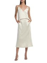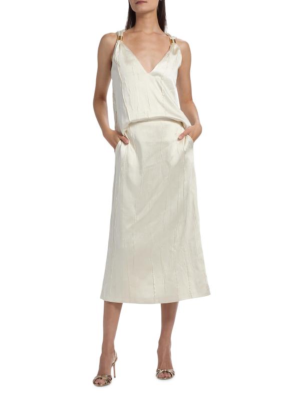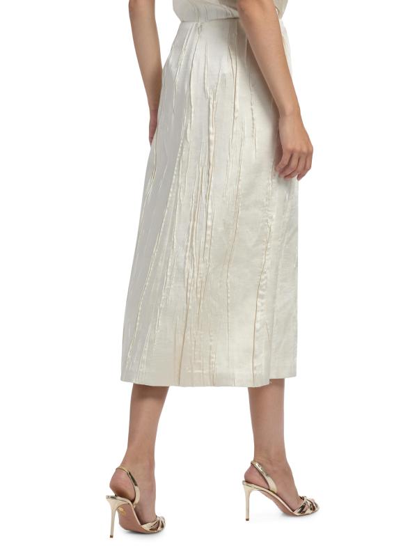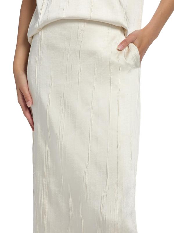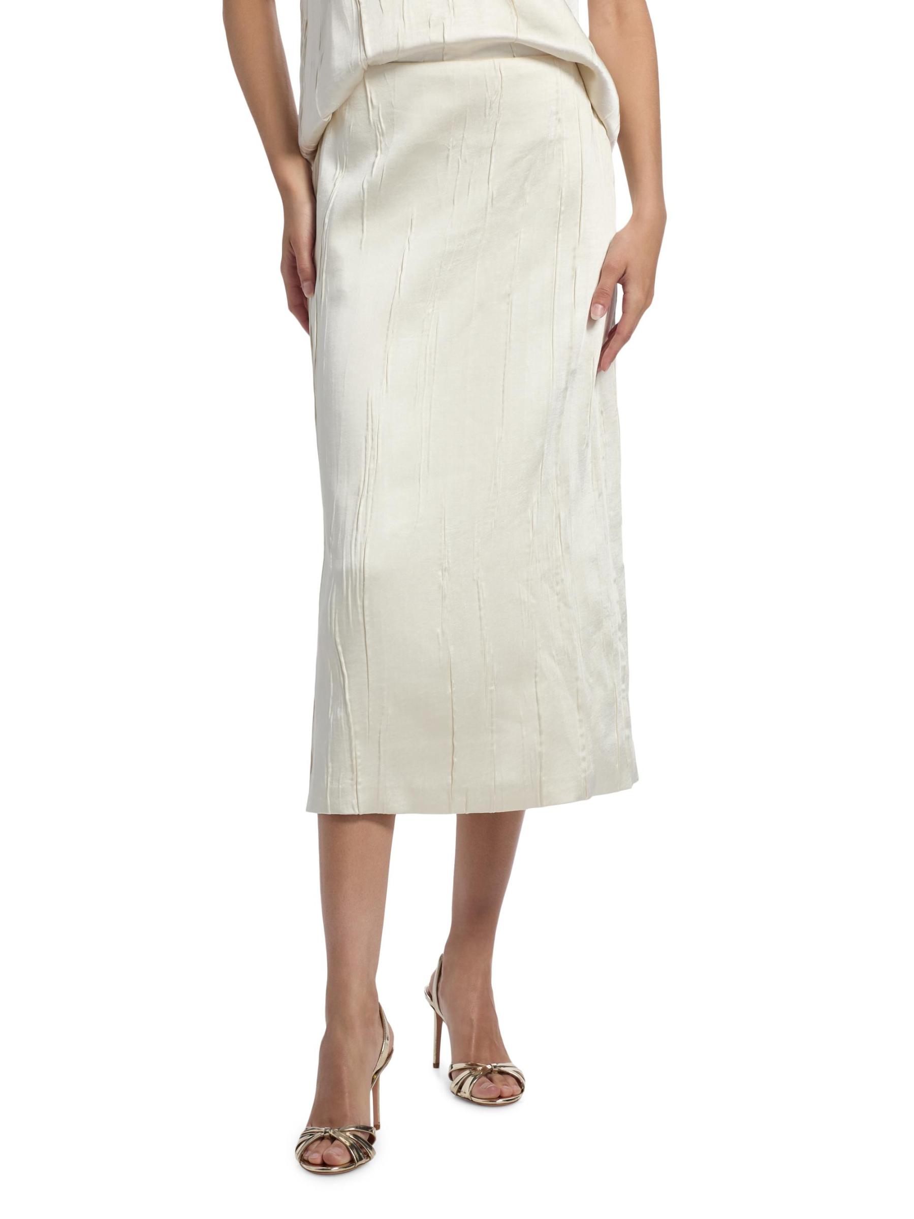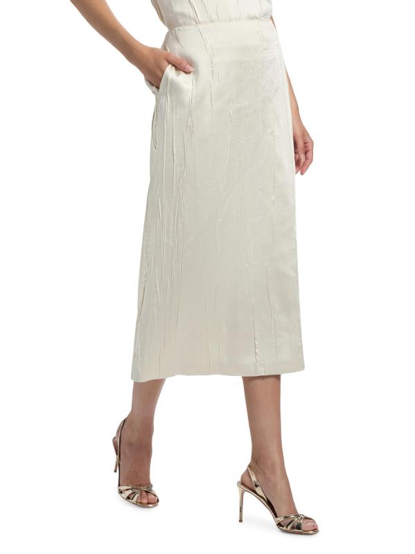 تنورة تيرني المتوسطة المستقيمة من براندون ماكسويل مصنوعة من الساتان المجعد ومصممة بجيوب جانبية على درزات.