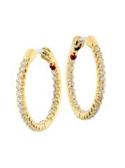 من مجموعة الكنوز الصغيرة. تتألق هذه الأقراط الحلقية من الداخل والخارج من روبرتو كوين المصنوعة من الذهب عيار 18 قيراطًا بشكل جميل مع الماس المرصوف. يقوم مصمم المجوهرات الشهير بتوقيع كل قطعة بحجر ياقوتي واحد يوضع في مكان مخفي.
