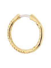 من مجموعة الكنوز الصغيرة. تتألق هذه الأقراط الحلقية من الداخل والخارج من روبرتو كوين المصنوعة من الذهب عيار 18 قيراطًا بشكل جميل مع الماس المرصوف. يقوم مصمم المجوهرات الشهير بتوقيع كل قطعة بحجر ياقوتي واحد يوضع في مكان مخفي.الماس، 0.76 طن ذهب أصفر أو أبيض عيار 18 قيراطًا ليفيرباك صُنع في إيطاليا