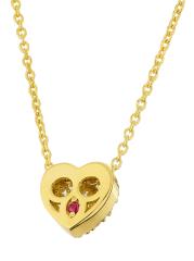 من مجموعة الكنوز الصغيرة. تتميز قلادة روبرتو كوين المصنوعة من الذهب الأبيض عيار 18 قيراطًا بقلادة أنيقة على شكل قلب مرصعة بالألماس اللامع. يقوم مصمم المجوهرات الشهير بتوقيع كل قطعة بحجر ياقوت واحد يوضع في مكان مخفي.