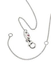 من مجموعة الكنوز الصغيرة. تتميز هذه القلادة من روبرتو كوين، المصنوعة من الذهب الأبيض عيار 18 قيراطًا، بثلاث حلقات مستديرة من الماس مثبتة على طول سلسلة كابلات راقية. يقوم مصمم المجوهرات الشهير بتوقيع كل قطعة بحجر ياقوتي واحد يوضع في مكان مخفي.الماس، 0.15 ملعقة صغيرة ذهب أبيض عيار 18 قيراط مشبك لوبستر صُنع في إيطاليا