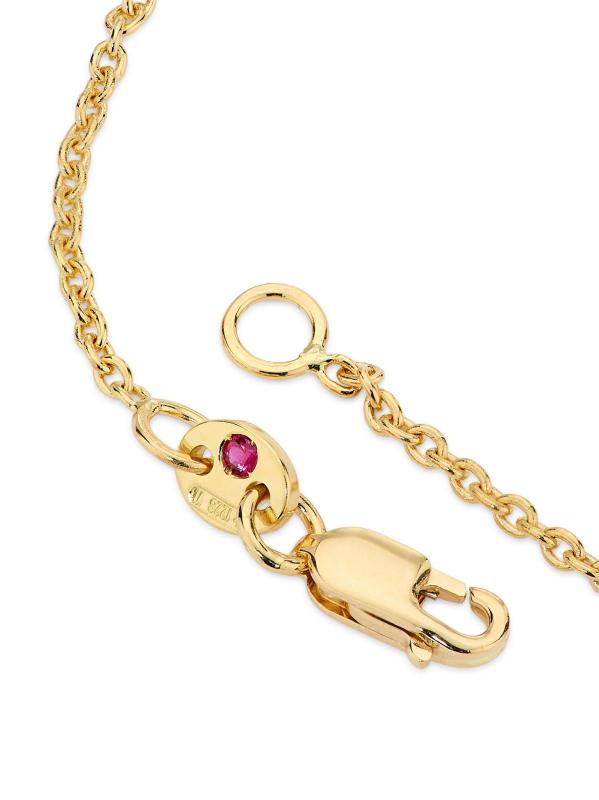 من مجموعة الكنوز الصغيرة. يتميز سوار روبرتو كوين هذا المصنوع من الذهب الأصفر عيار 18 قيراطًا والمرصع بالألماس اللامع بسحر القلب المفتوح. يقوم مصمم المجوهرات الشهير بتوقيع كل قطعة بحجر ياقوتي واحد يوضع في مكان مخفي.