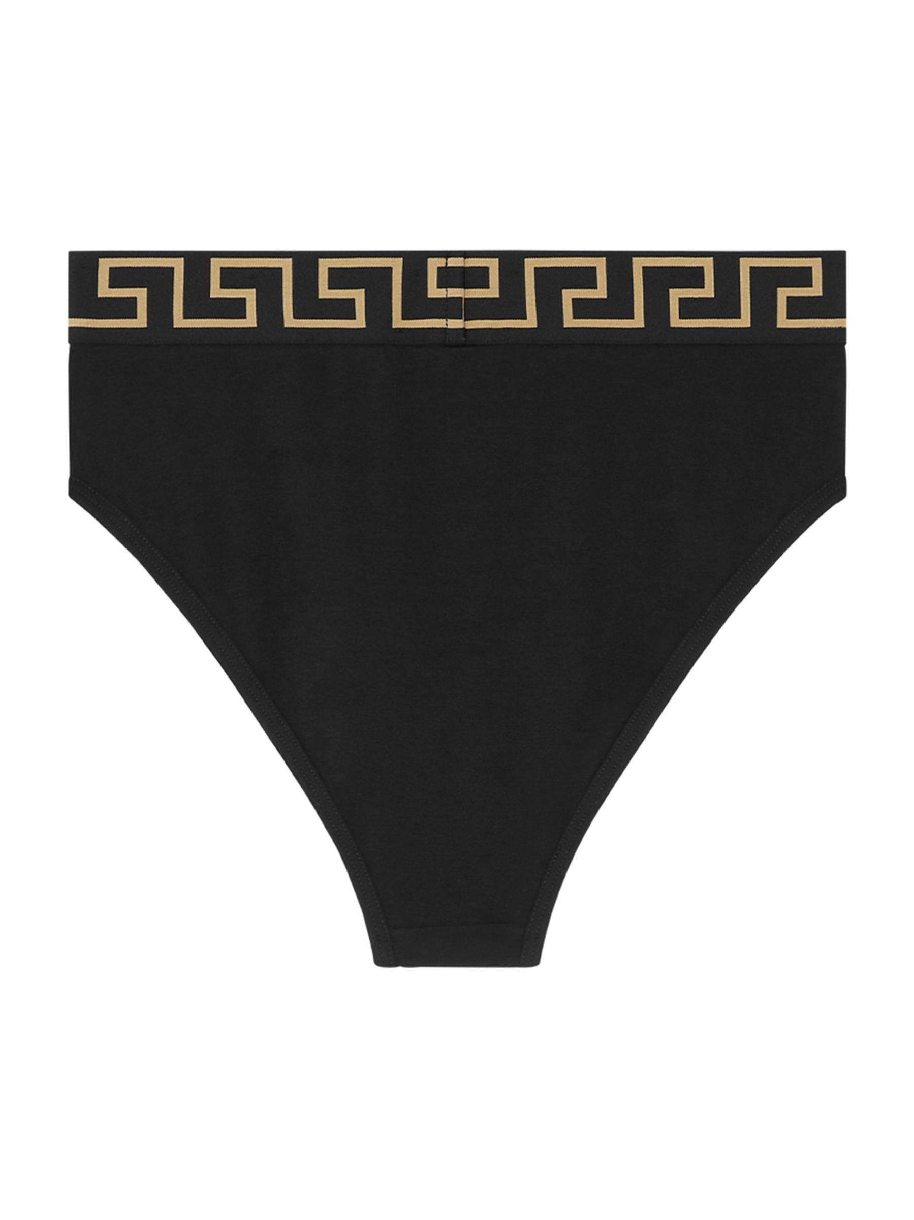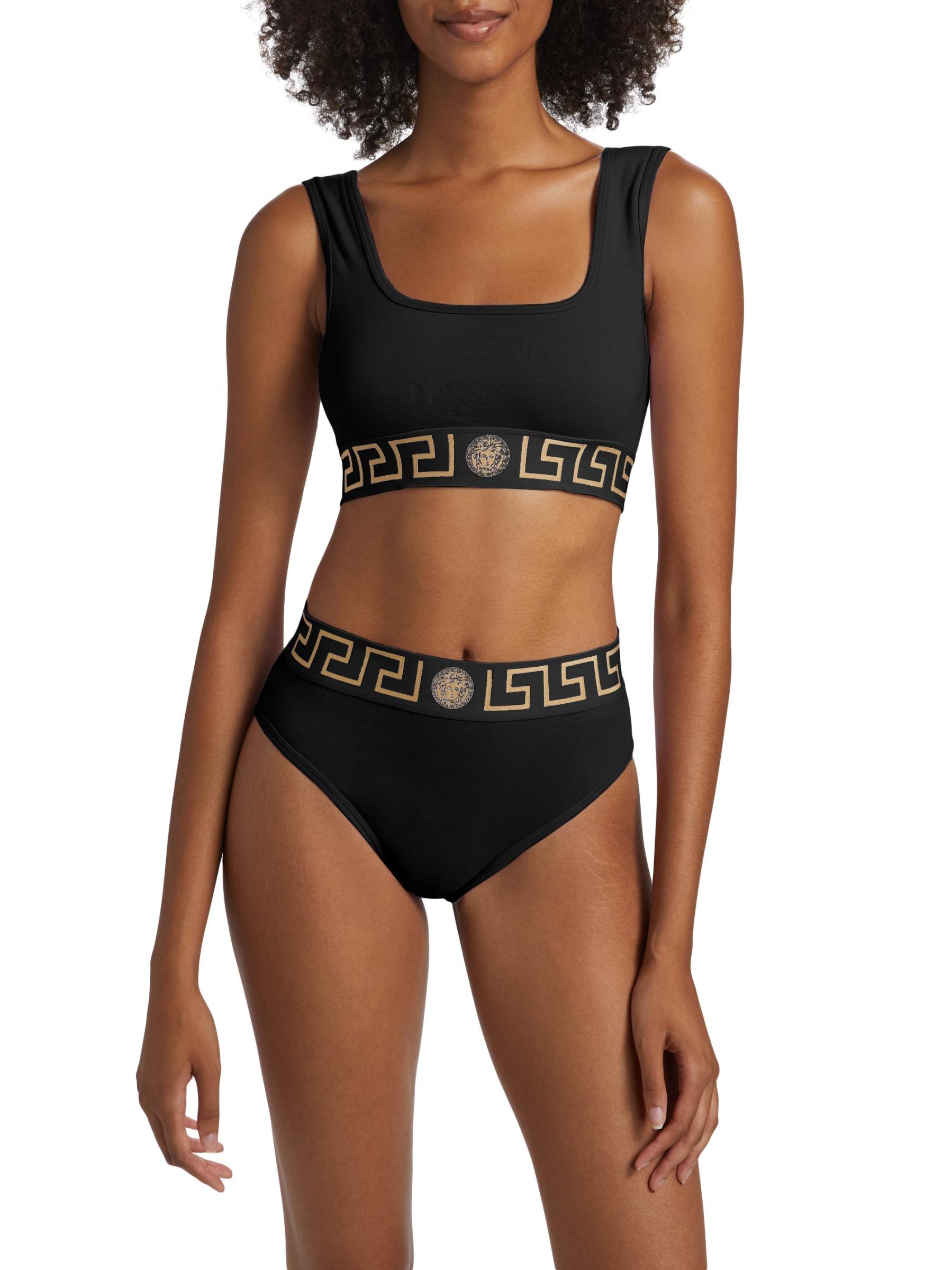 تتميّز سراويل توبيكا هذه من فيرساتشي، المصنوعة من قماش الجيرسي القطني المرن، بحزام خصر مطاطي مزين بزخرفة لا غريكا المميزة للعلامة التجارية.