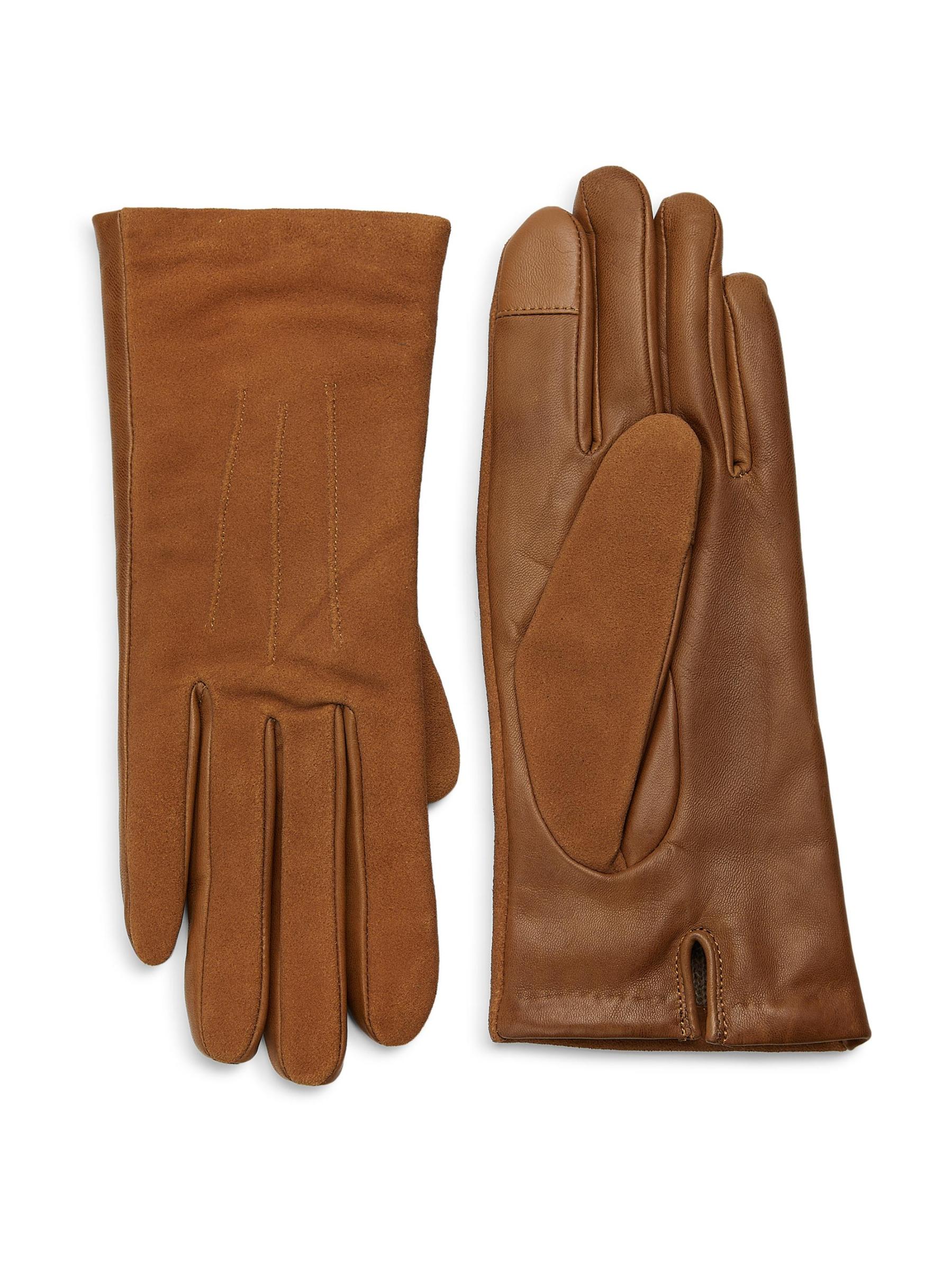 تتميز قفازات Touch Tech Classic من Carolina Amato المصنوعة من الجلد المرن بتقنية حساسة للمس في أطراف أصابع الإبهام والسبابة.