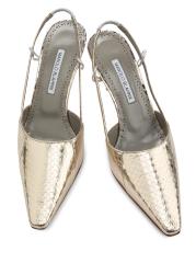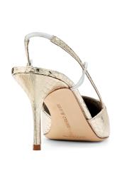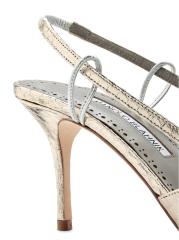 صُنعت أحذية Touki slingback هذه من Manolo Blahnik في إيطاليا من الجلد المعدني المنقوش على شكل ثعبان مع تفاصيل متباينة.