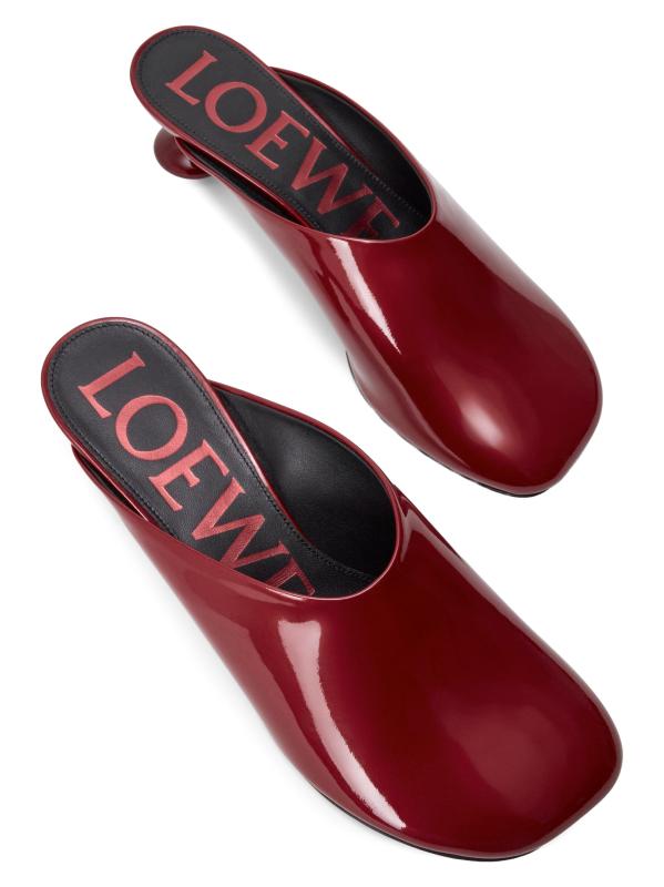 تتميز بغال الألعاب هذه من LOEWE المصنوعة من الجلد اللامع اللامع بمقدمة مربعة مرحة وكعب قطة منحوت مقاس 45 مم.
