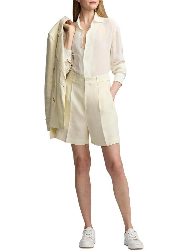 صُنعت شورتات تريسي ذات الثنيات من رالف لورين في إيطاليا، وهي مصنوعة من الكتان ومزينة بأزرار من عرق اللؤلؤ.حلقات الحزام جيوب جانبية منزلقة سحّاب، زر للإغلاق كتان 100% البطانة: 91% حرير/ 9% إليستين تنظيف جاف صُنع في إيطاليا