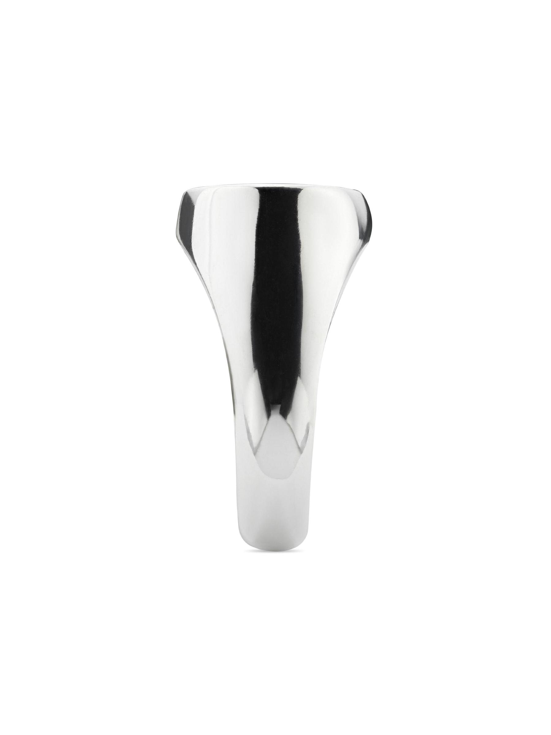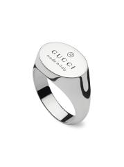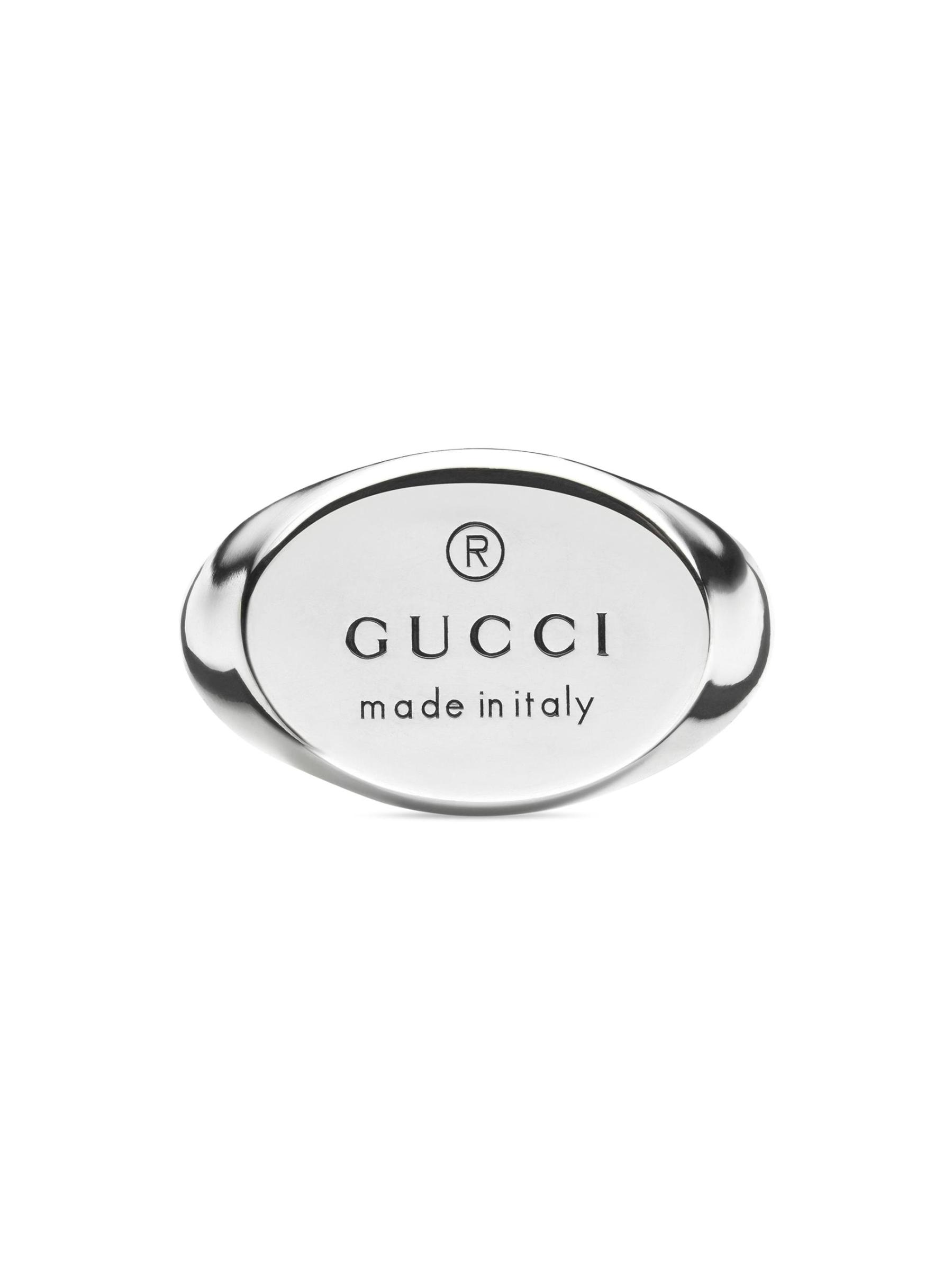 من مجموعة العلامات التجارية. يتميز خاتم غوتشي المصنوع من الفضة الإسترلينية بوجه بيضاوي محفور بشعار العلامة الأيقوني.
