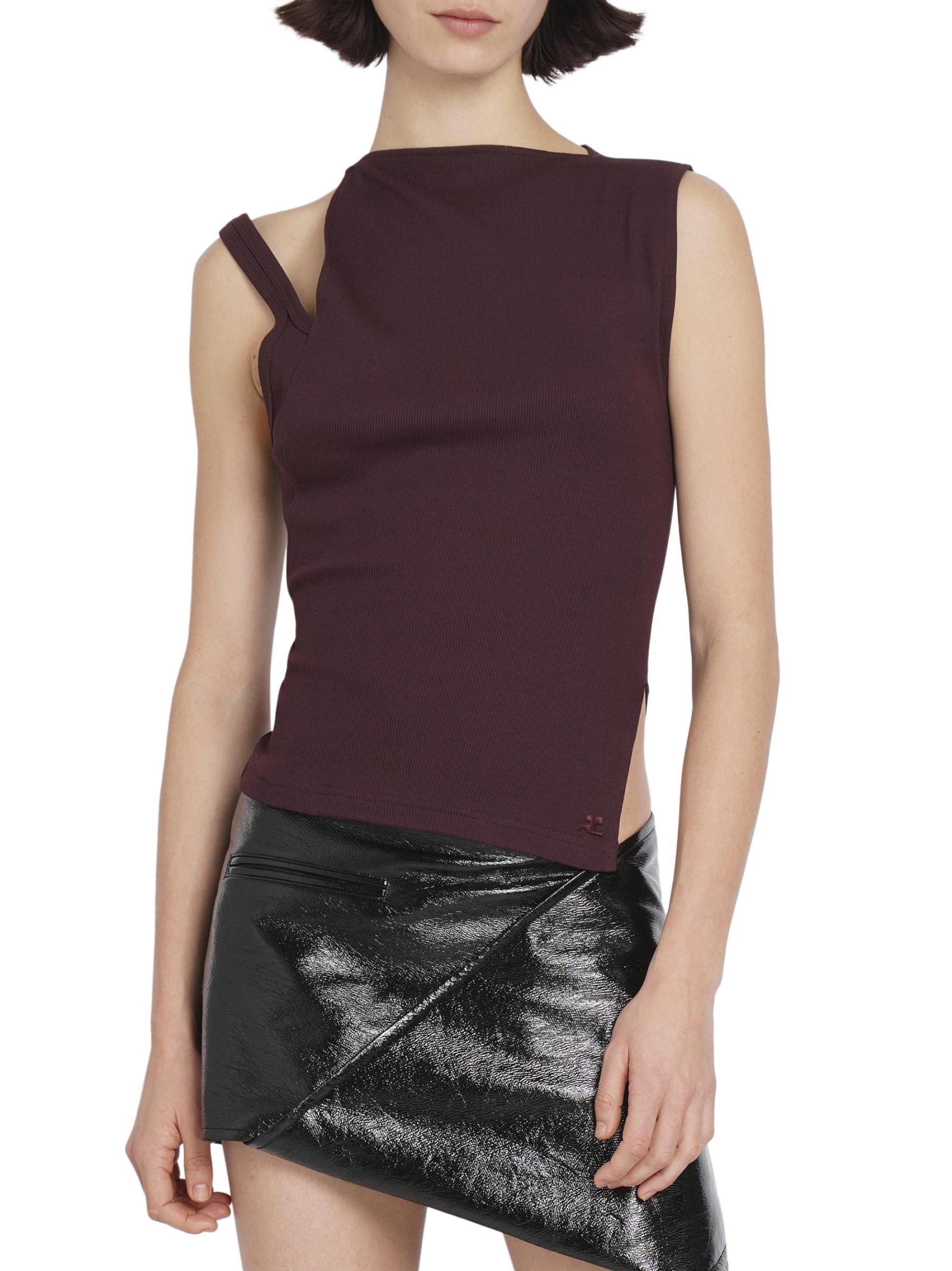 بلوزة Transverse 90s من Courreges مصنوعة من القطن المرن المحبوك، وتتميز برقبة عالية غير متماثلة مع فتحة على الكتف.رقبة عالية بدون أكمام تسحب 98% قطن/ 2% إليستين تنظيف جاف صُنع في البرتغال