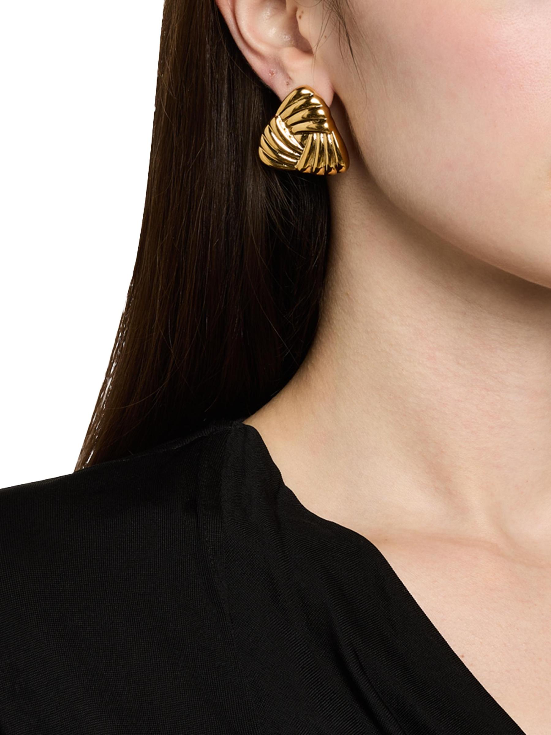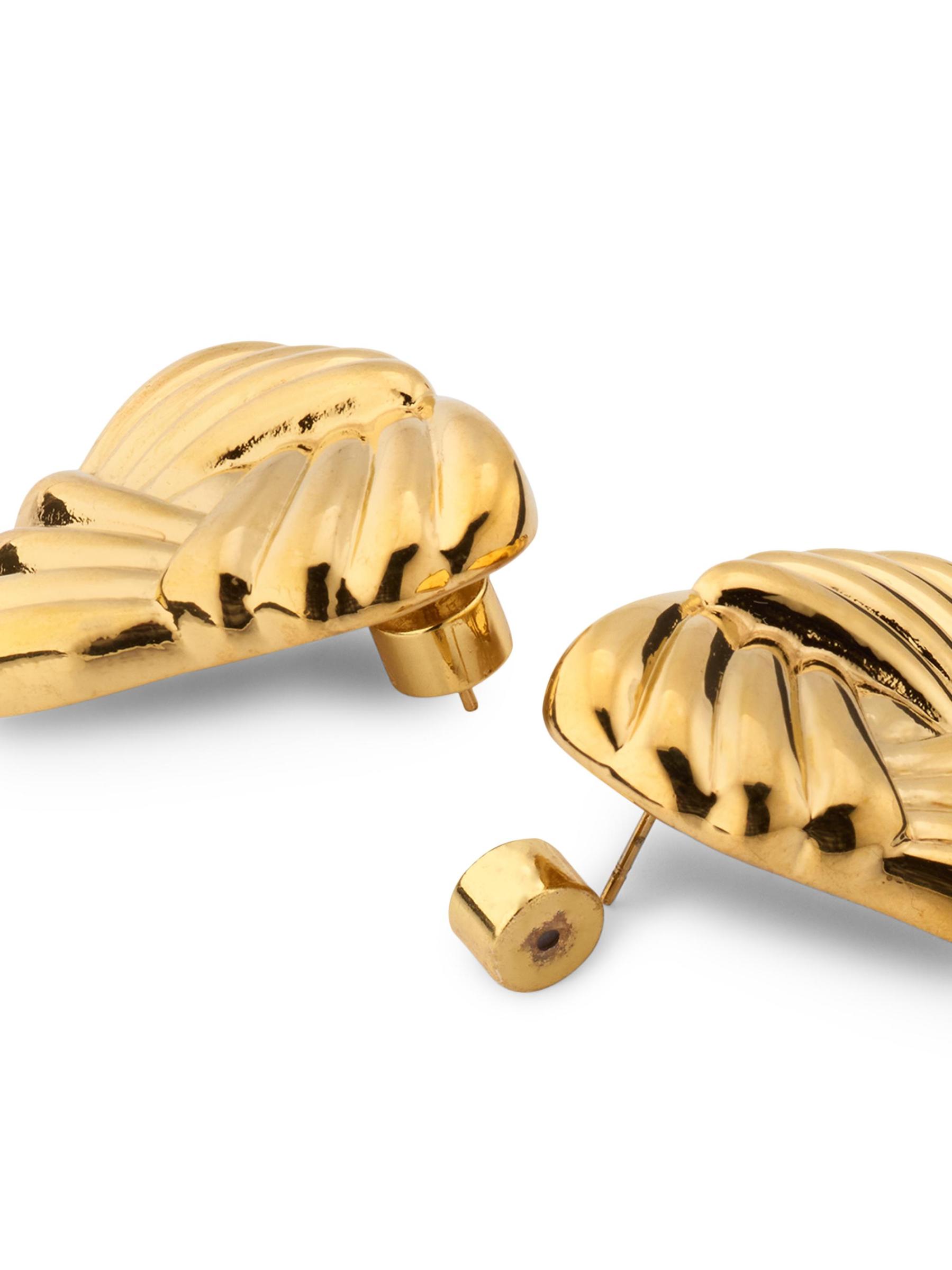 تتميّز أقراط Heaven Mayhem الثلاثية بتصميم مخدد ومصنوعة من المعدن المصقول المطلي بالذهب عيار 18 قيراطًا.