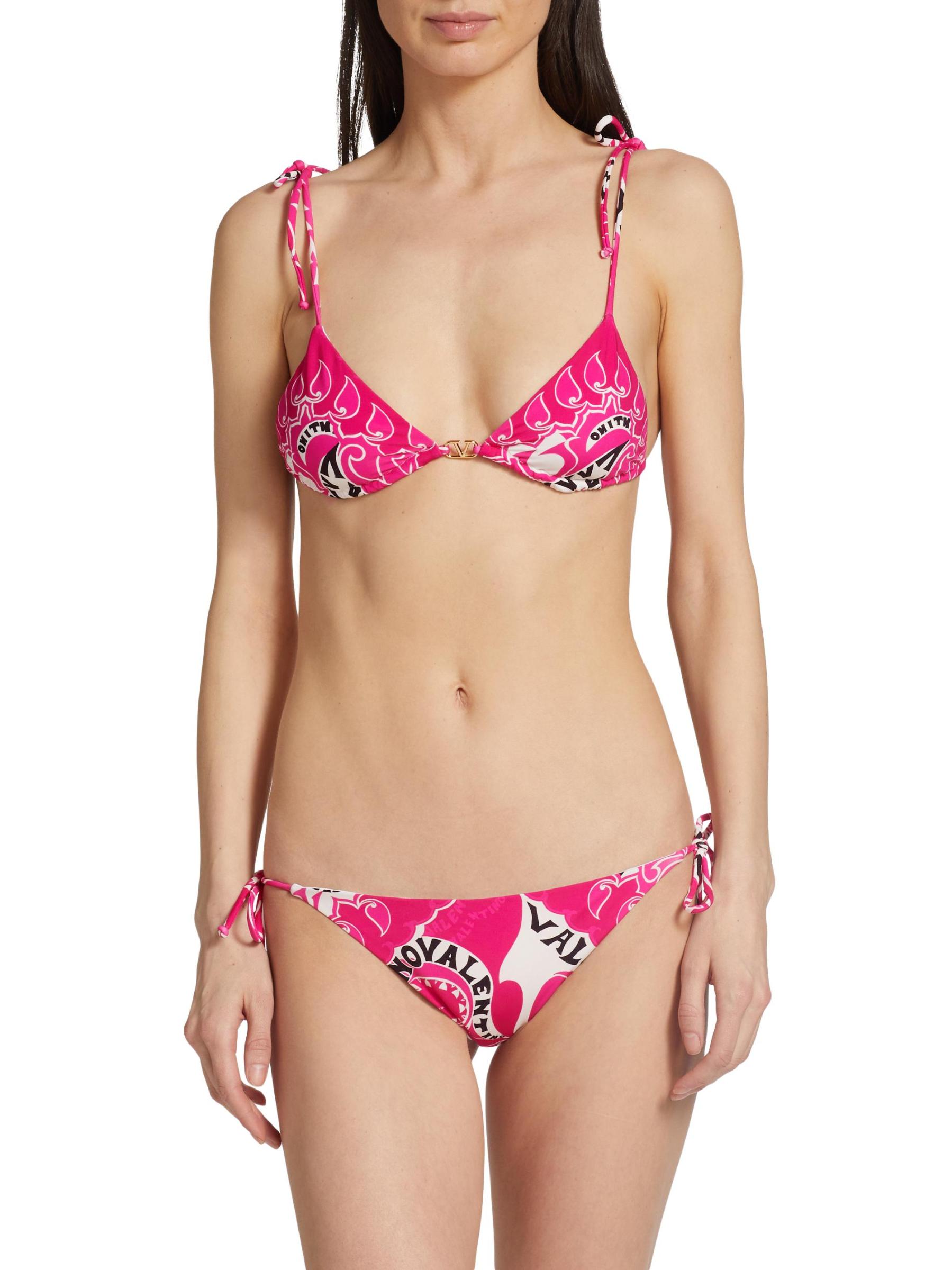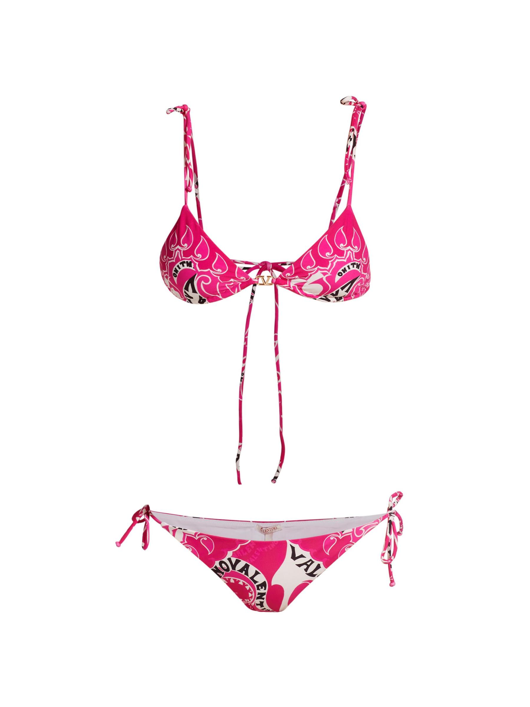 تم الانتهاء من مجموعة البكيني المثلثة المكونة من قطعتين من فالنتينو بطبعات تجريدية وشعار مختلطة. البطانة: 73% بولياميد/ 27% إيلاستين. 71% بولياميد/ 29% إيلاستين. تنظيف جاف. صُنع في إيطاليا.