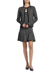 تم تصميم كارديجان تريشيا من رامي بروك من نسيج الجاكار المعدني ليمنحك شكلًا مناسبًا. تضفي الزخرفة الصلبة المحبوكة على شكل مضلع شكلًا إضافيًا لهذا النمط.رقبة مستديرة أكمام طويلة تقليم مضلع إغلاق بأزرار أمامية 67% فيسكوز/ 25% بوليستر/ 7% ألياف معدنية/ 1% إليستين غسيل يدوي مستوردة