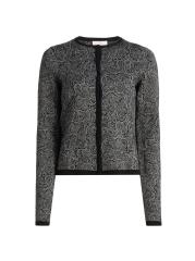 تم تصميم كارديجان تريشيا من رامي بروك من نسيج الجاكار المعدني ليمنحك شكلًا مناسبًا. تضفي الزخرفة الصلبة المحبوكة على شكل مضلع شكلًا إضافيًا لهذا النمط.