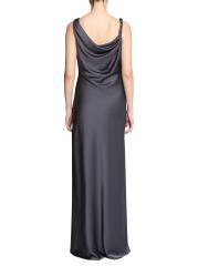فستان ترينا من الساتان مزيّن برقبة على شكل قارب
