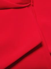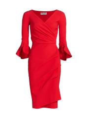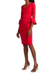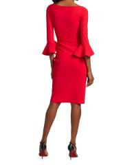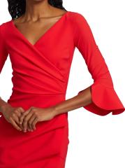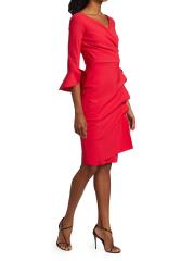 فستان كوكتيل من الجيرسيه بأكمام واسعة مرحة وطيات معقدة في جميع أنحاء الصدّار والتنورة.