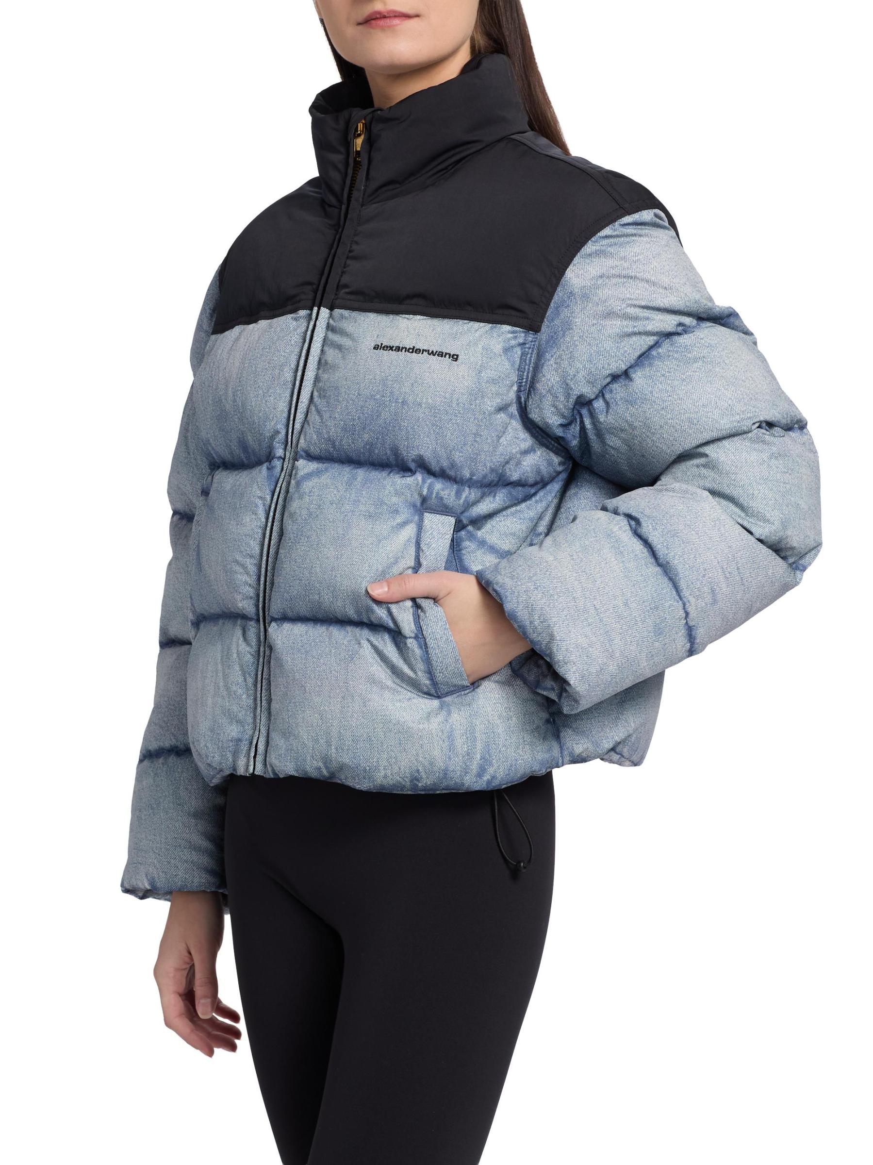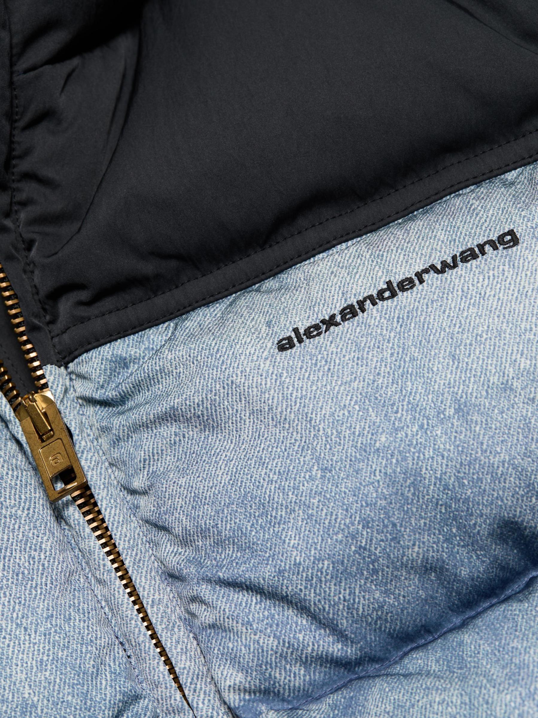يتميز هذا الجاكيت البخاخ من ألكسندر وانغ بتصميم الدنيم trompe l'oeil. تضفي ياقة الحامل والجيوب الجانبية المائلة وحافة الرباط إمكانية ارتداء رائعة لهذا الطراز المزود بسحّاب أمامي.