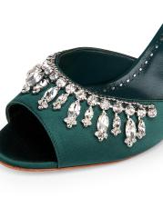 تم تزيين بغال Tulimu ذات الأصابع المفتوحة من Manolo Blahnik بالكريستال اللامع فوق كعب خنجر.