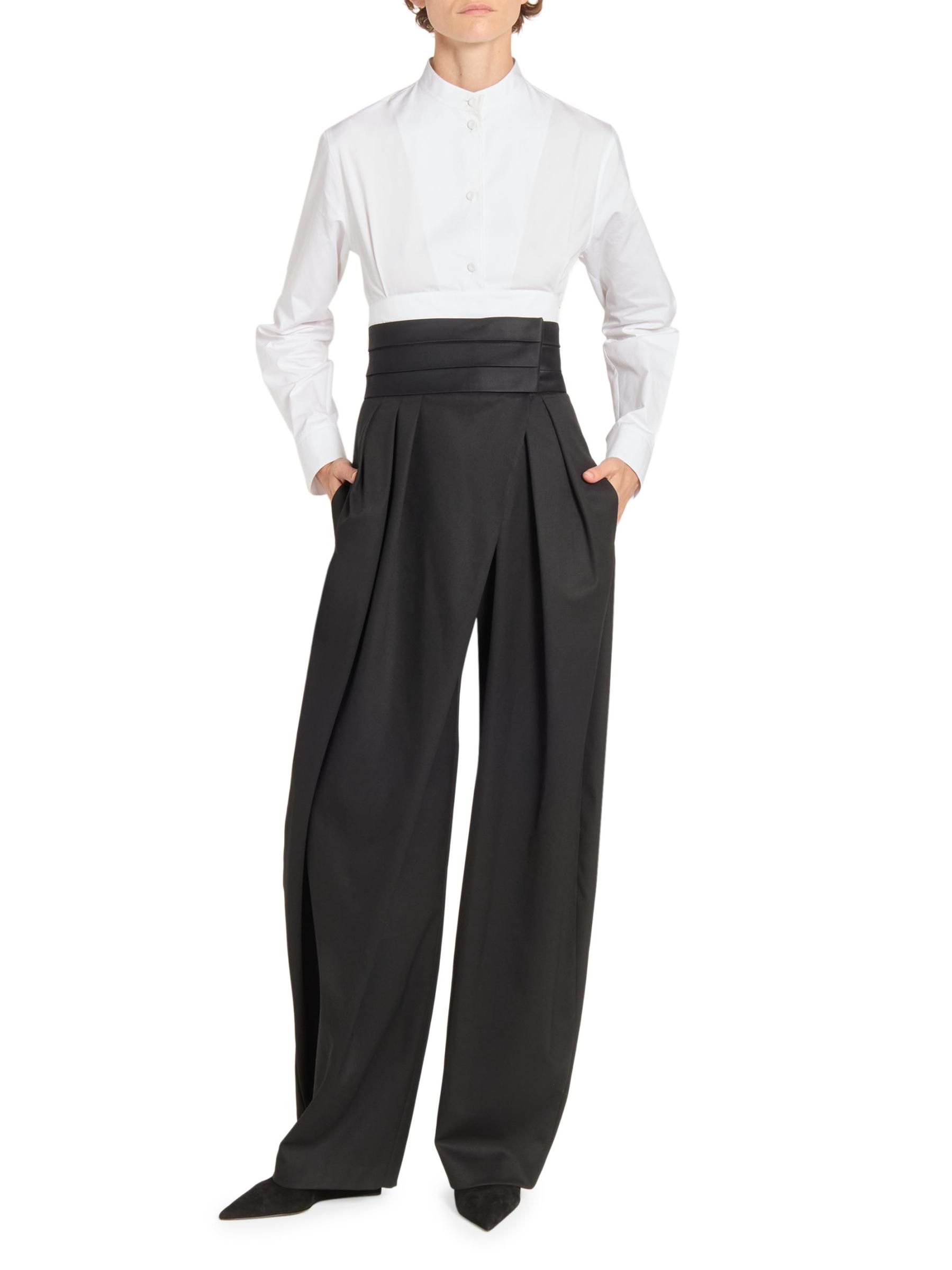 صُنعت سراويل التوكس من Alaïa في إيطاليا من الصوف المطاطي، وهي مصممة بشكل مرتفع على شكل ساقين أسطوانيين مع تصميم مطوي. يتميز هذا الزوج بخصر مستوحى من الساتان.خصر مطوق جيوب جانبية مشقوقة إغلاق أمامي بخطاف وعروة 98% صوف/ 2% إيلاستين بطانة الجيب: 100% قطن تنظيف جاف صُنع في إيطاليا