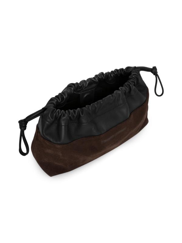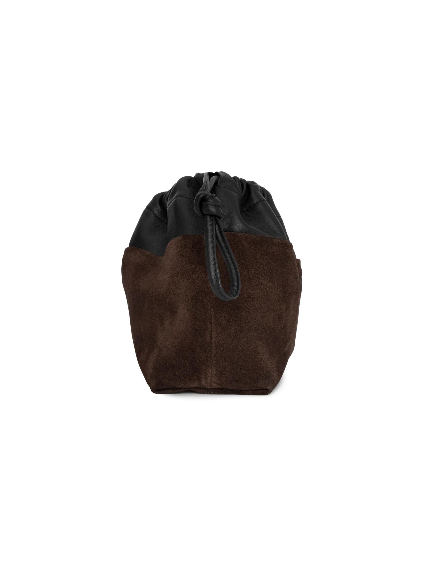 حقيبة يد مزدوجة اللون من الجلد المدبوغ والجلد برباط