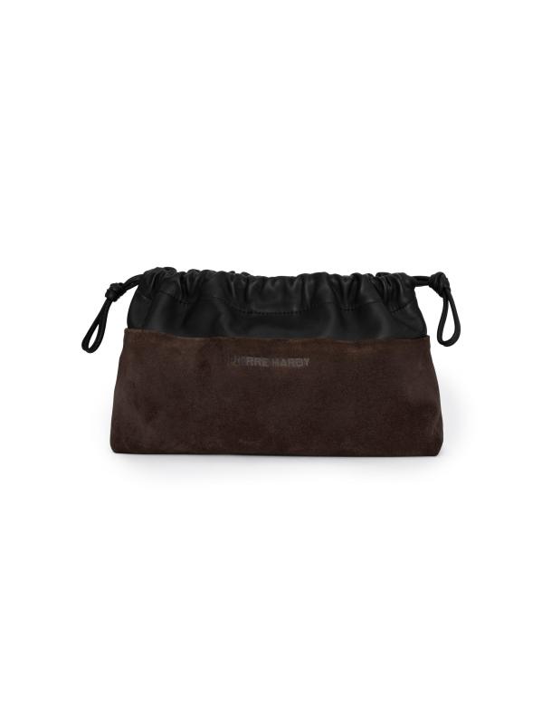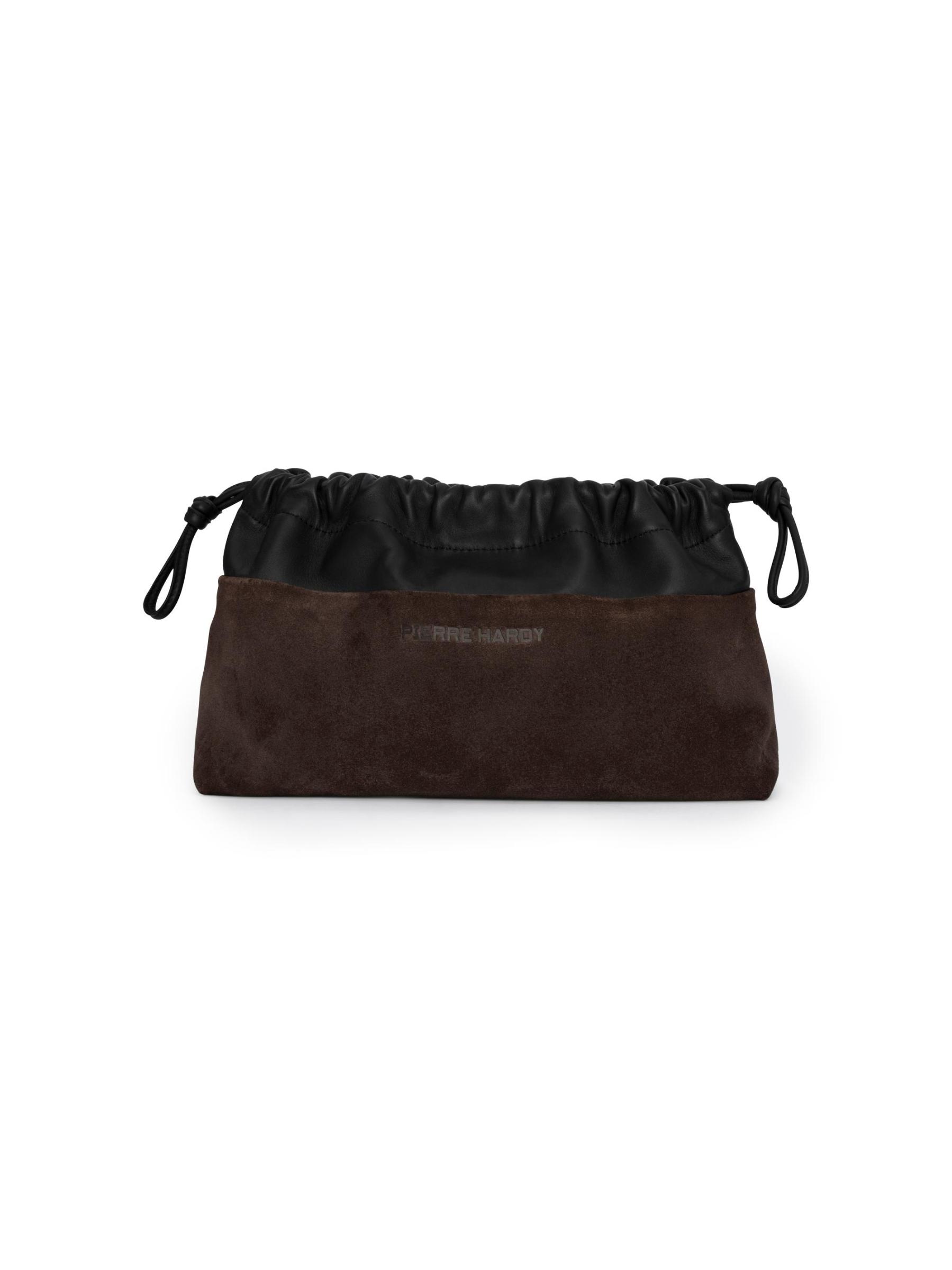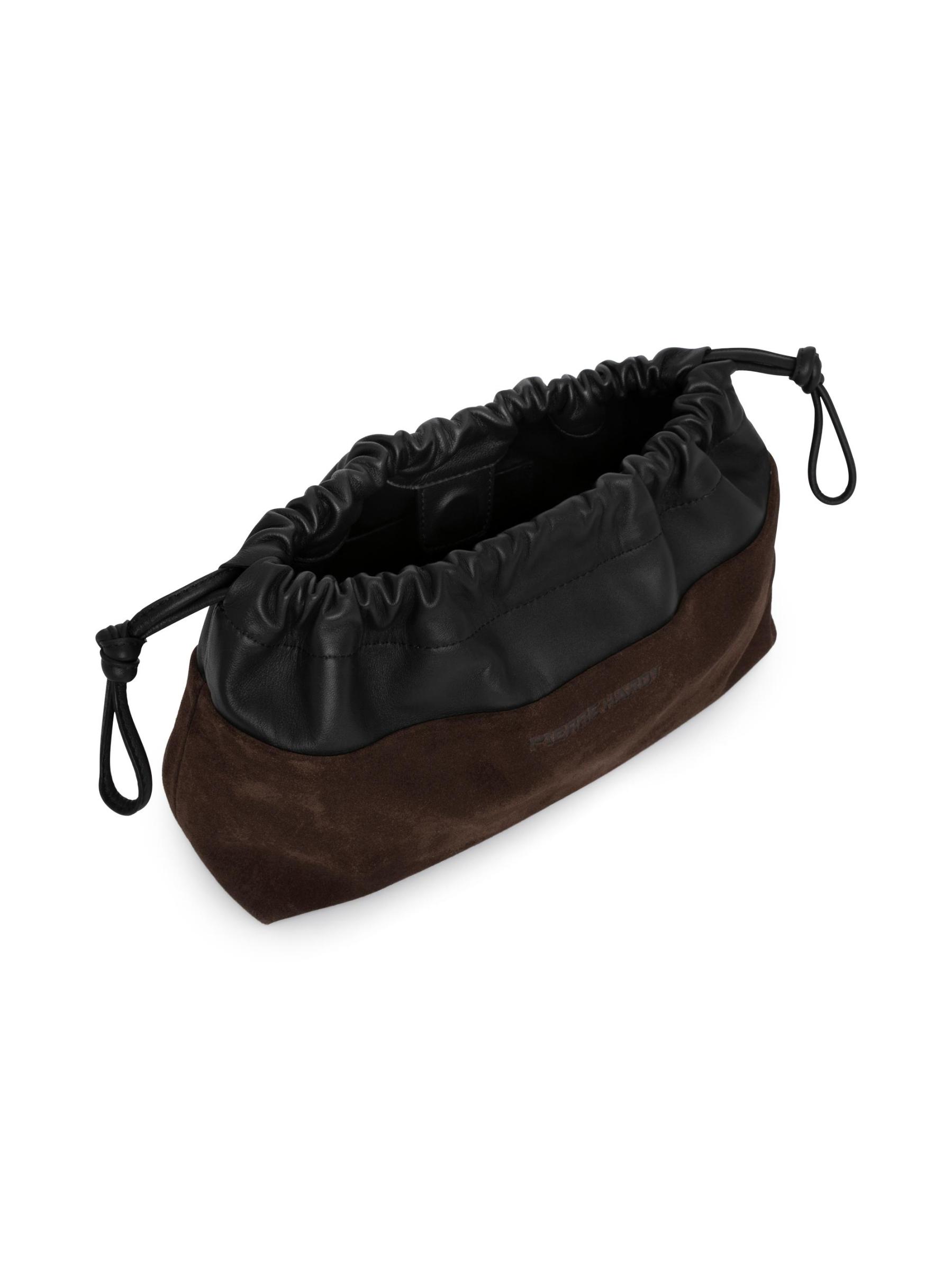 حقيبة اليد المزدوجة هذه من بيير هاردي مصنوعة من الجلد المدبوغ والجلد، وتتميز بإغلاق مغناطيسي مخفي وحزام قابل للإزالة لتصميم متعدد الاستخدامات.