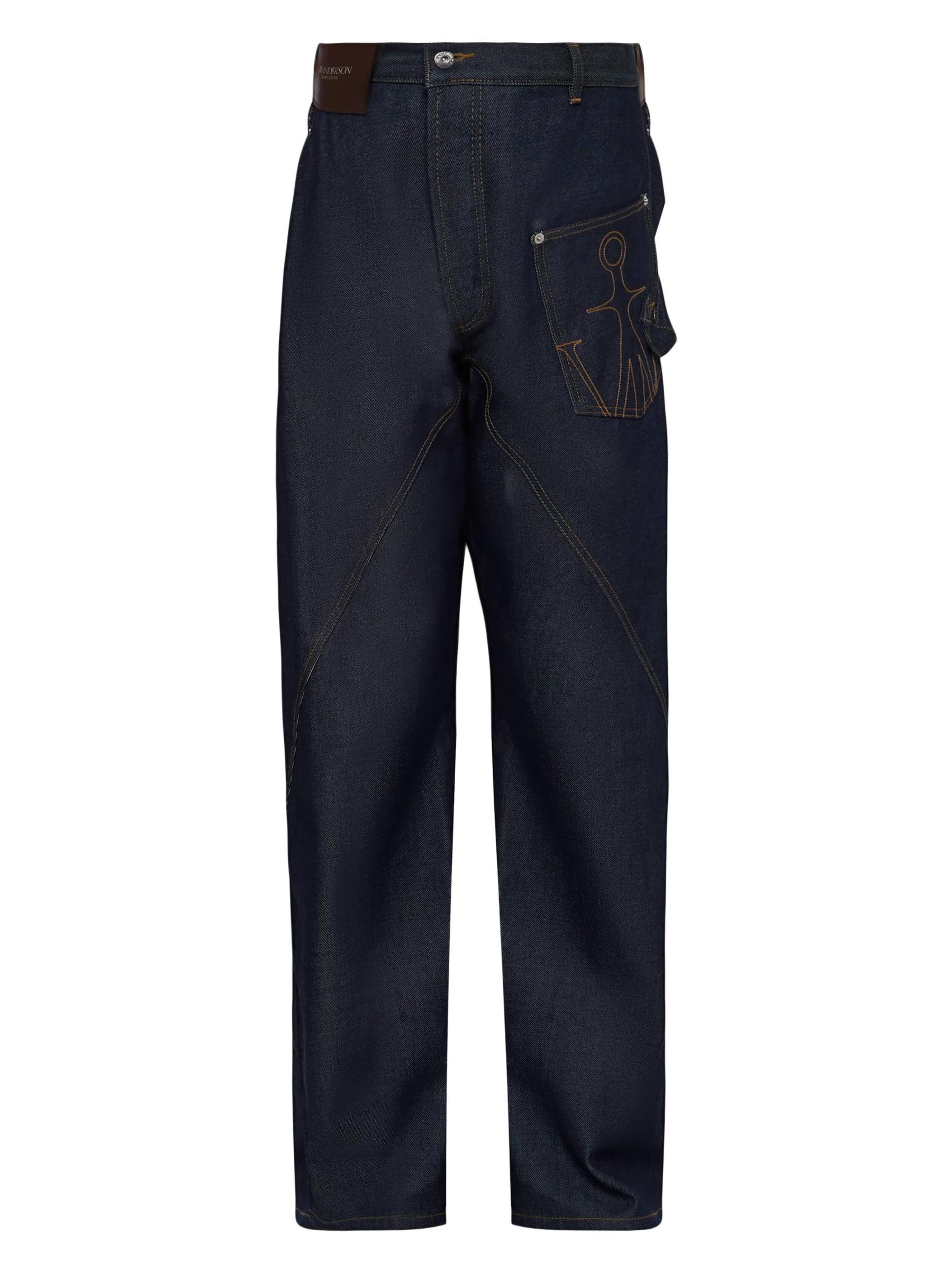 يُظهر جينز Twisted Workwear من JW Anderson، المصنوع من الدنيم القطني الياباني الداكن، الأسلوب التجريبي المميز للعلامة التجارية. يجلب حزام الخصر «الملتوي» الجيب الخلفي الكلاسيكي وحلقة النجار إلى الأمام والجانب. تفاصيل درزات متماثلة وشعار Anchor مخيط يكملان المظهر.