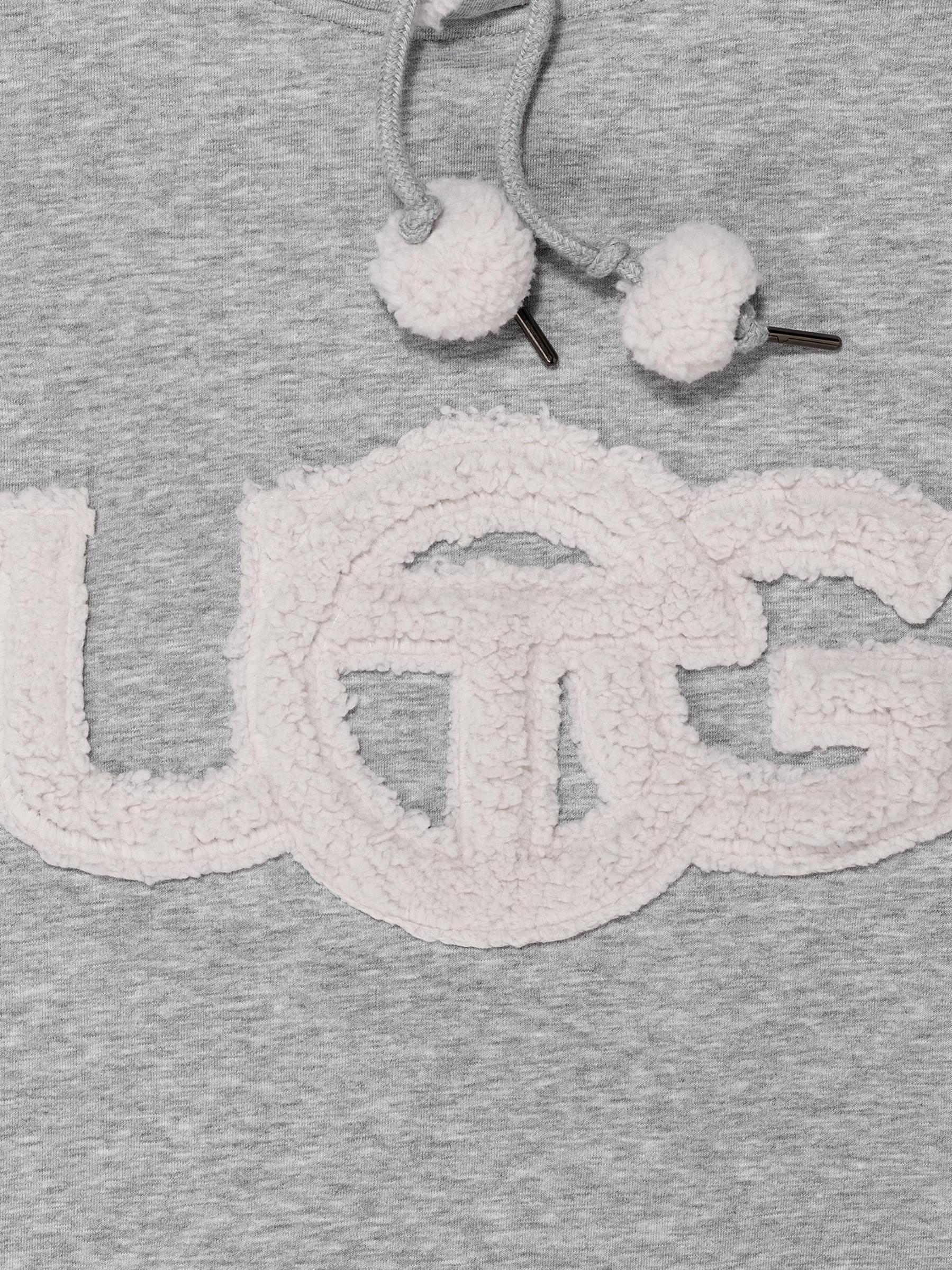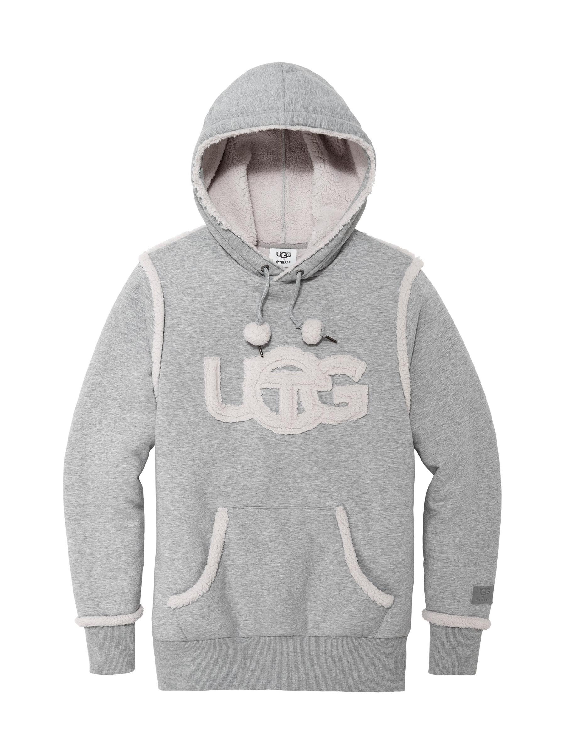 تتعاون العلامة التجارية لأسلوب الحياة في كاليفورنيا، UGG، مع العلامة التجارية الشاملة للجنسين Telfar للتعاون الثاني بين الحقائب الشتوية والملابس الخارجية والإكسسوارات. يتميز هذا السويت شيرت المريح المبطن بالشيربا بشعار نسيجي على الجهة الأمامية وأزرار مرحة على غطاء الرأس المزود برباط.