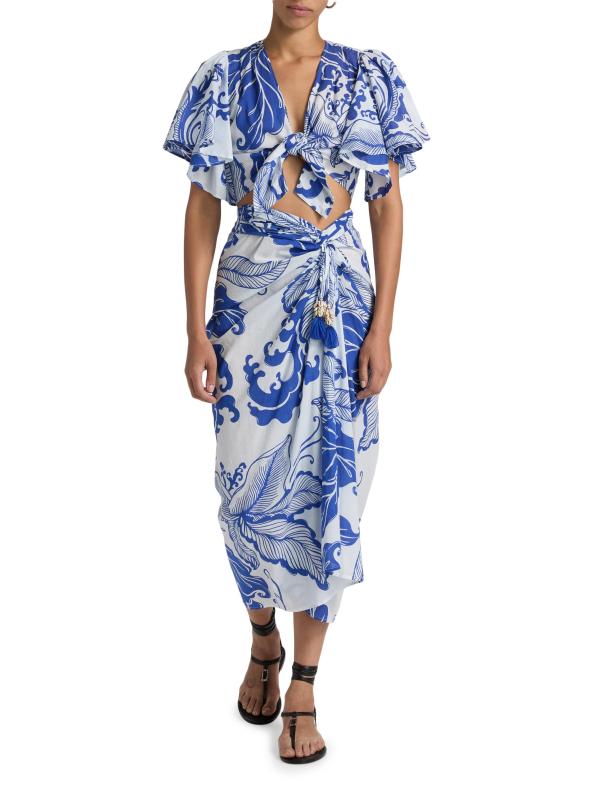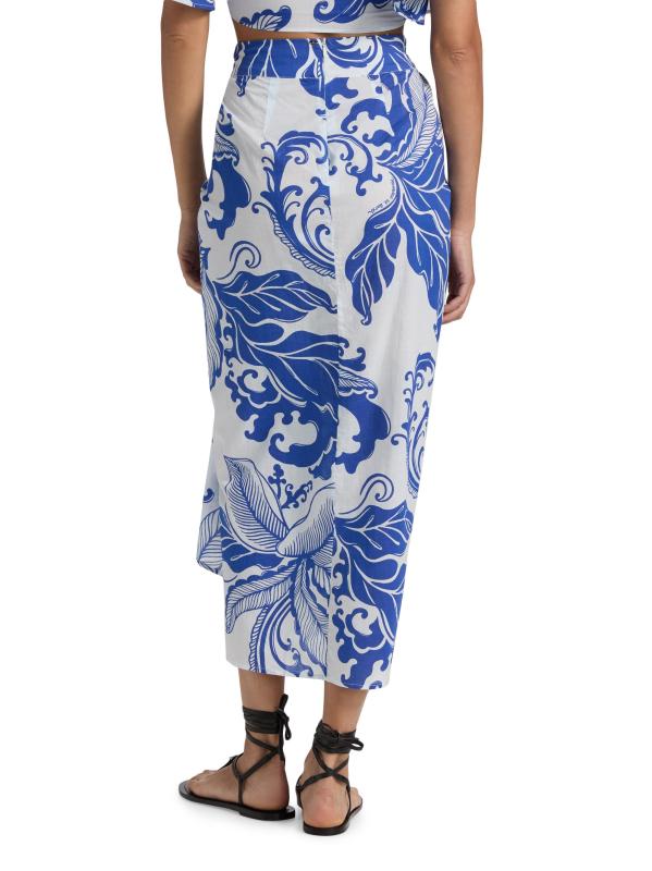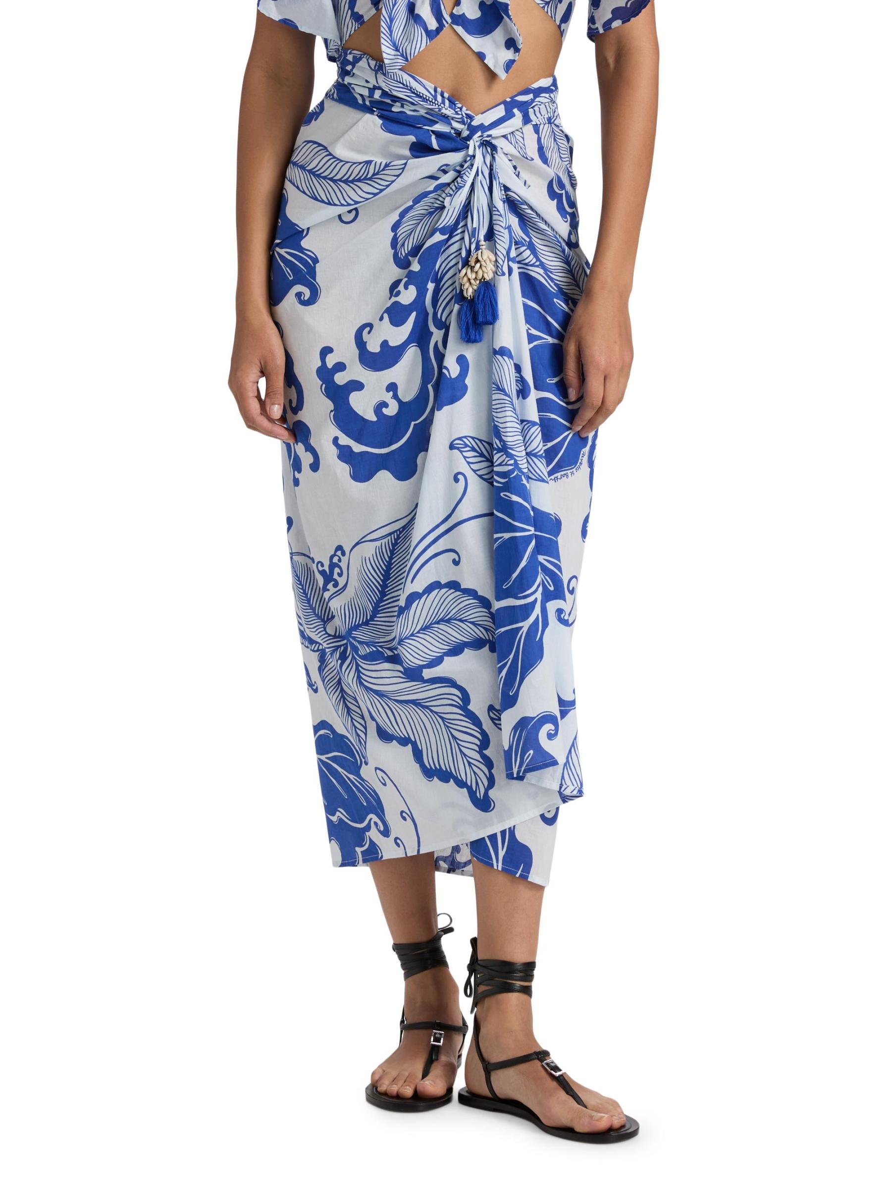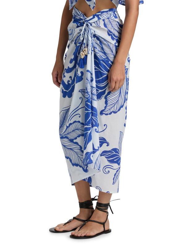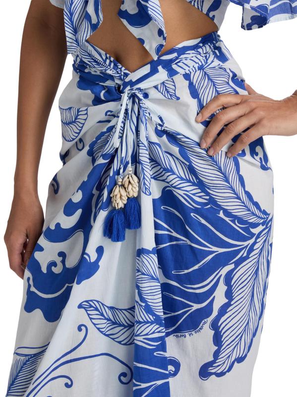 تتميّز تنورة Uma maxi من Poupette St Barth المصنوعة من القطن الخفيف بطبعة مرجانية مذهلة وتفاصيل منسدلة ولمسات صدفية عند الخصر المعقود.