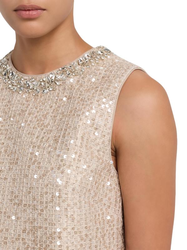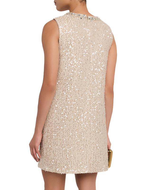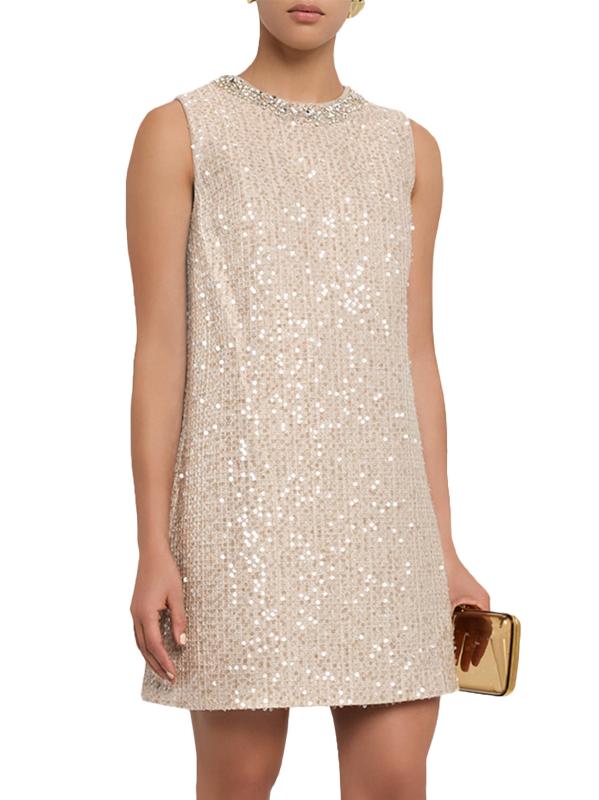 Babi بالترتر اللامع والتشطيبات الكريستالية عند خط العنق لإضفاء لمسة راقية.فتحة رقبة على شكل جوهرة بدون أكمام صورة شيفت ظلية إغلاق بسحّاب خلفي مخفي بوليستر البطانة: بوليستر تنظيف جاف مستوردة