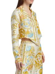 يتميز هذا القميص المصنوع من نسيج قطني فاخر بطبعة باروكو تحت الماء من فيرساتشي. تضفي ياقة التخييم وفتحة نصف الفتحة الأمامية المزودة بأزرار وإغلاق برباط ذاتي شعورًا بالراحة على هذا الأسلوب.طوق المخيم أساور بأزرار بأكمام طويلة فتحة أمامية بأزرار، إغلاق برباط ذاتي حرير بنسبة 100% تنظيف جاف صُنع في إيطاليا