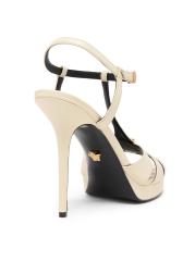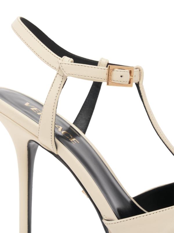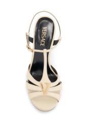 يتميز صندل Versace V المصنوع من الجلد بتصميم أنيق. تم الارتقاء بالتصميم على الفور من خلال أجزاء الشعار الأيقونية على شكل حرف V المصنوعة من المعدن المصقول باللون الذهبي، مما يضيف لمسة مميزة من الفخامة.إصبع مفتوح إغلاق بمشبك الجزء العلوي مصنوع من الجلد بطانة جلدية نعل جلدي صُنع في إيطاليا
