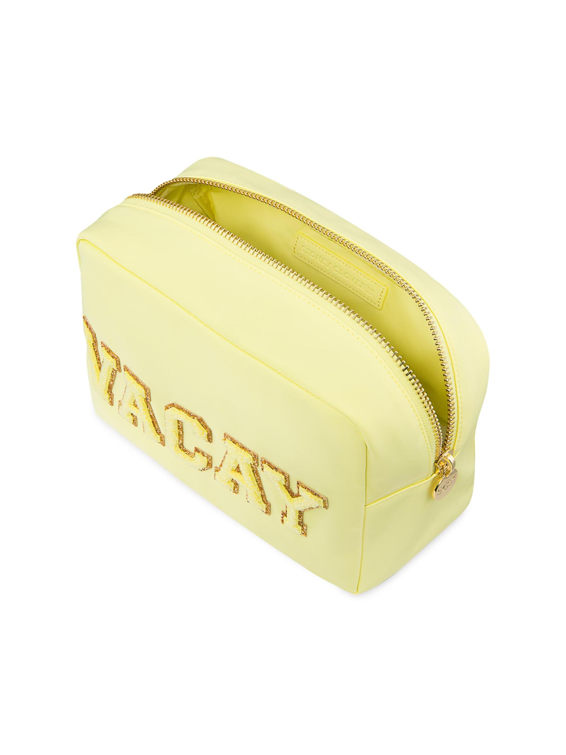 تم الانتهاء من حقيبة Vacay من Stoney Clover Lane بأحرف كبيرة على جانب واحد وسحّاب في الجزء العلوي.