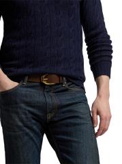 يتميز حزام فاتشيتا المصنوع من الجلد هذا من رالف لورين بيربل ليبل بإبزيم منحوت باللون الذهبي مع طرف مدبب قليلاً.