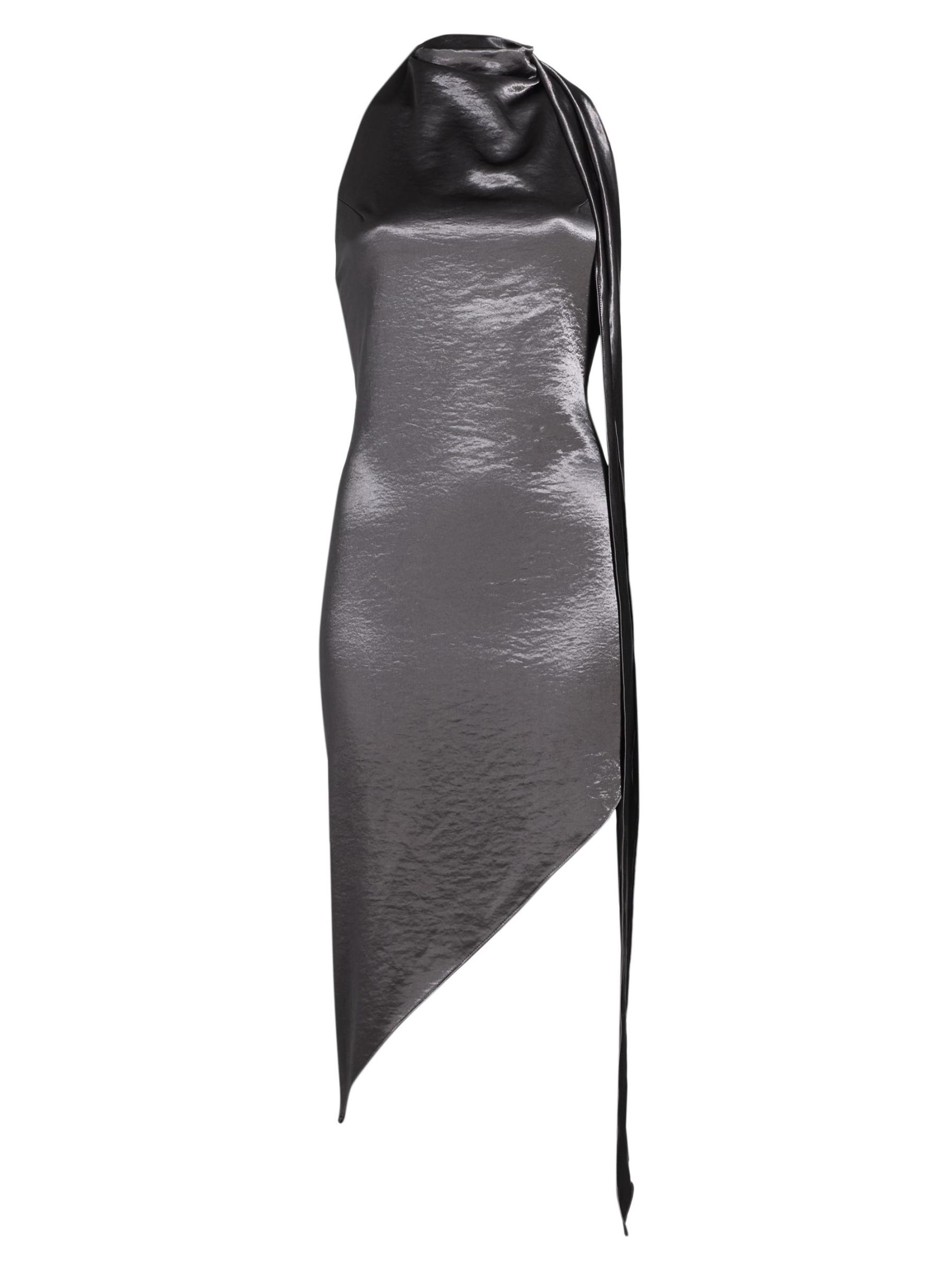 تم تصميم فستان Vallani القصير غير المتماثل من Amanda Uprichard بلمسة نهائية من الساتان وياقة على شكل وشاح.