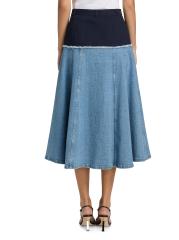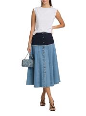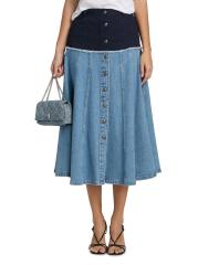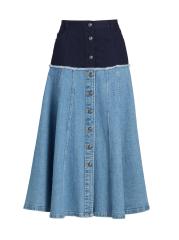تنورة متوسطة الطول من Veena Colorblocked من الدنيم بأزرار أمامية