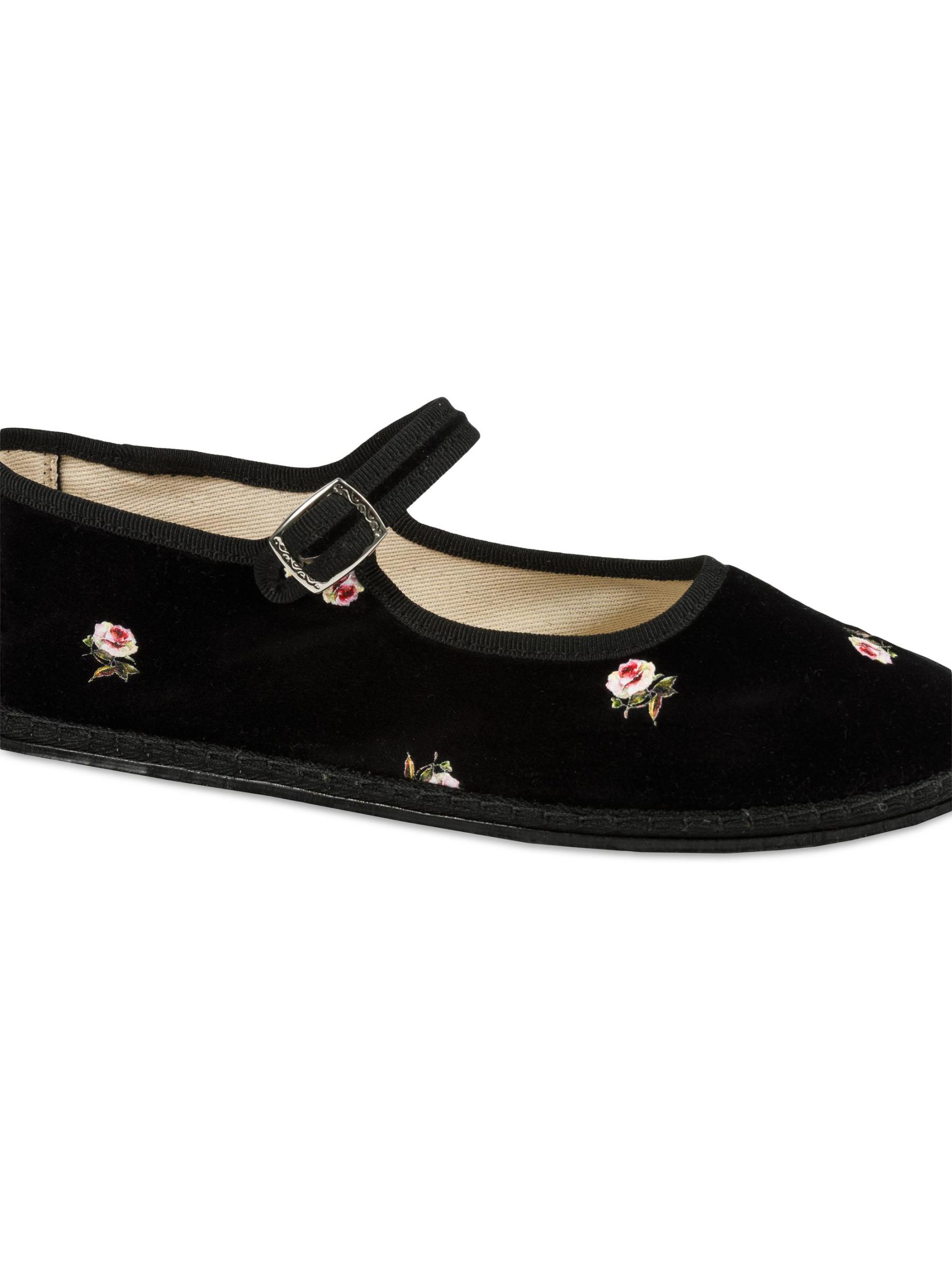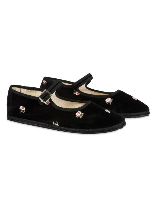 صُنعت ساعة Mary Janes المخملية هذه من Vibi Venezia من المخمل مع طباعة الأزهار وتتميز بأصابع قدم من اللوز ونعل مطاطي.