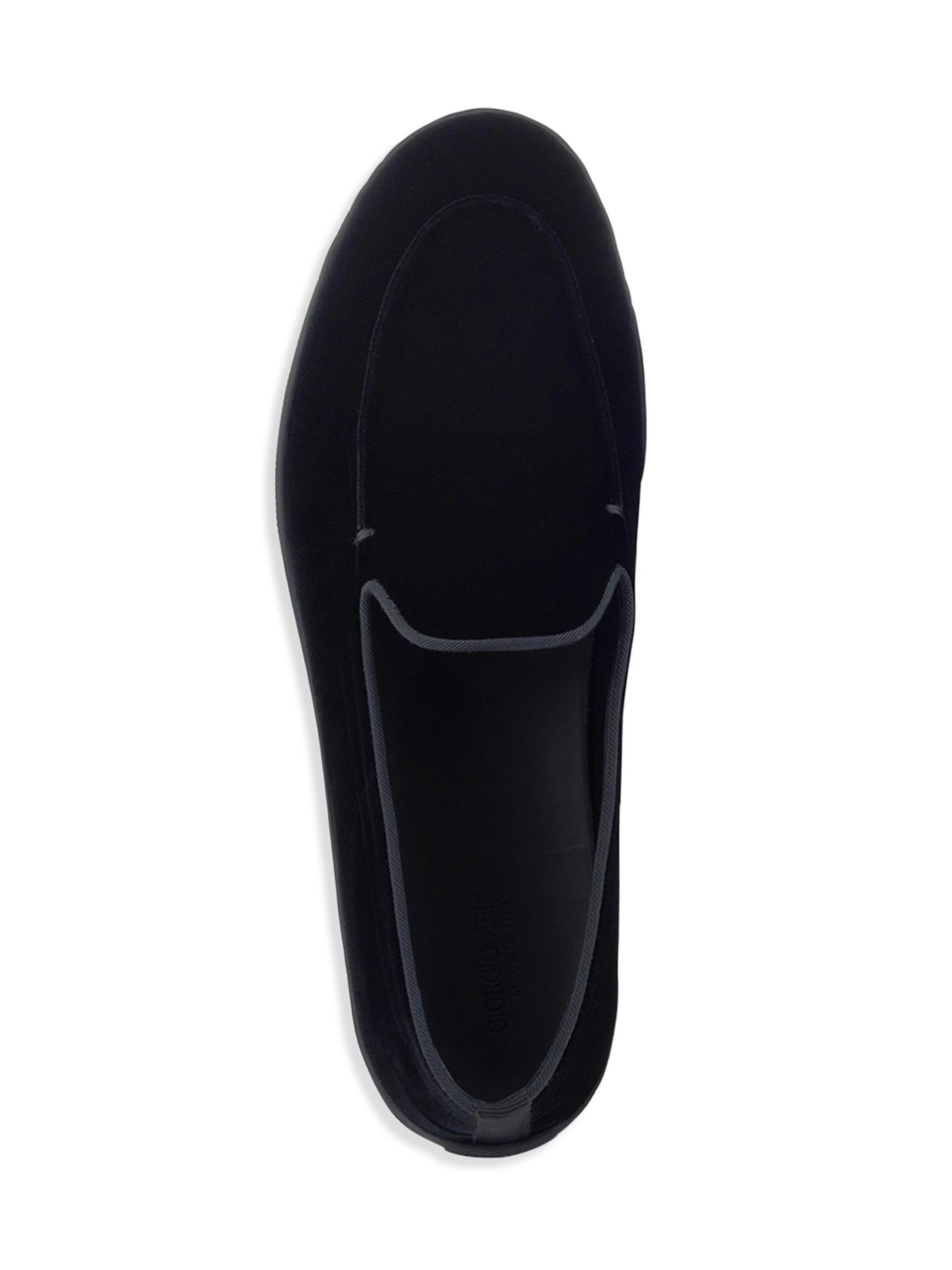 تتميّز أحذية جورجيو أرماني المصنوعة من المخمل اللامع بنعل مطاطي مريح.