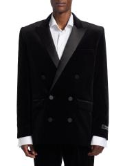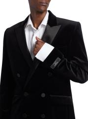 فقط في ساكس. صُنعت سترة Balmain هذه من المخمل القطني الغني مع ثنيات ساتان ناعمة. تُضفي الأزرار المتناسقة المُغطاة بالساتان والجيوب الجانبية القابلة للطي مزيدًا من البنية على هذا الطراز، وذلك بفضل تصميمه المُصمم على شكل مزدوج الصدر.