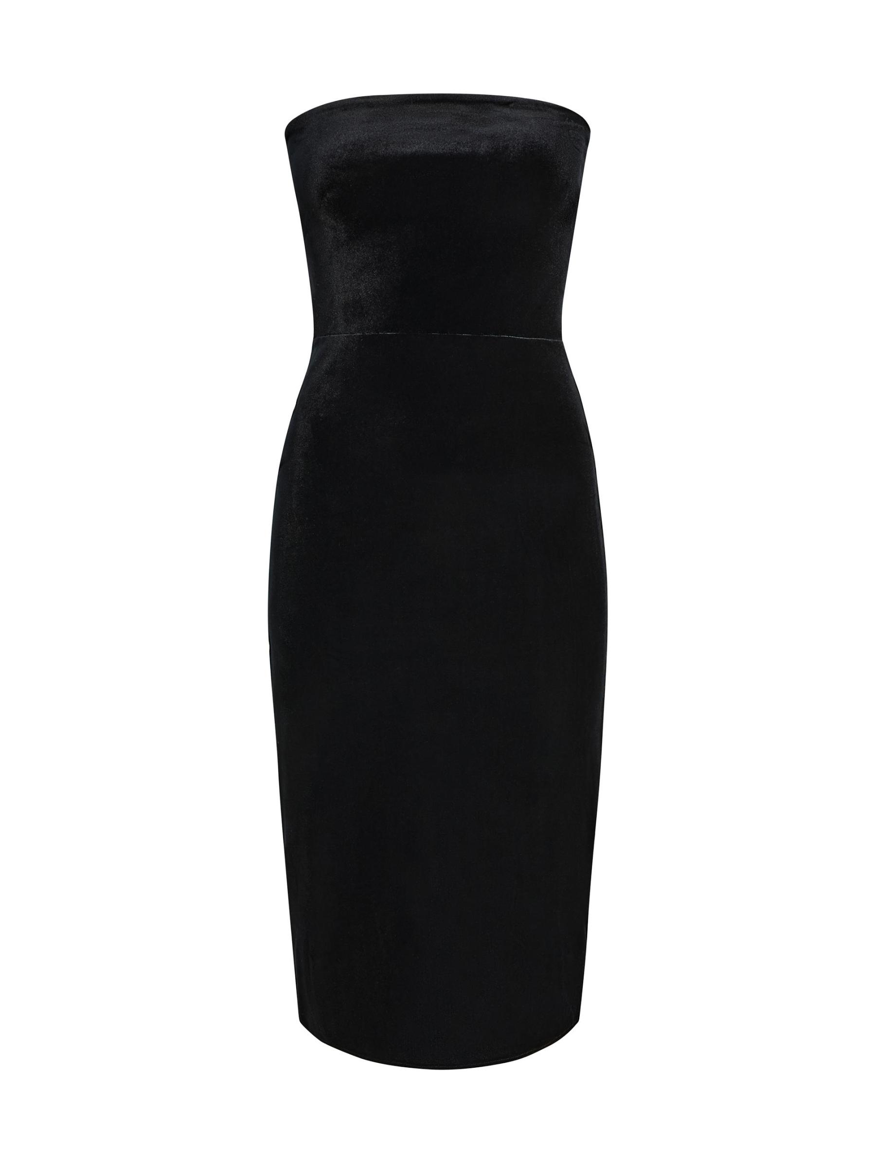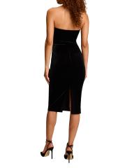 فستان مخملي متوسط الطول بدون حمالات