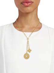 من مجموعة الأميرة الفينيسية. تتميّز هذه القلادة المصنوعة من الذهب الأصفر عيار 18 قيراطًا بميداليتين رائعتين مرصعتين بالألماس معلّقتين من سلسلة ذات روابط بيضاوية.