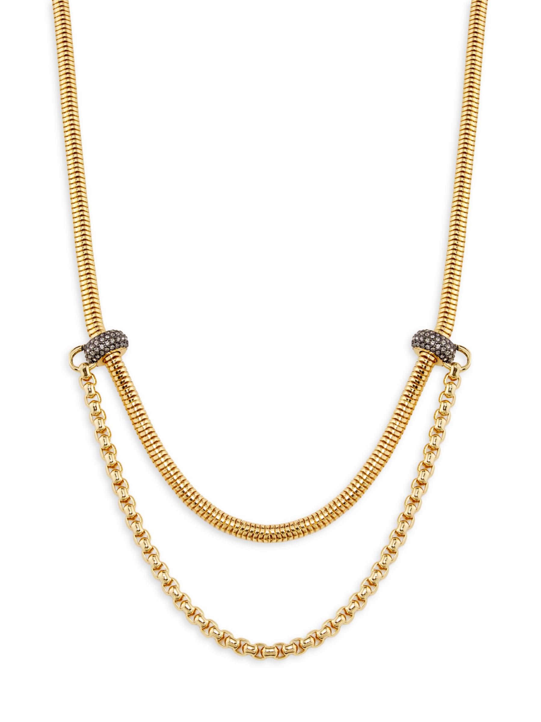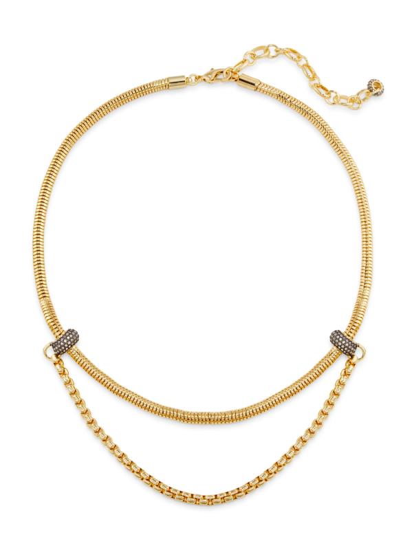 قلادة فينيس ذات سلسلة مزدوجة مطلية بالذهب عيار 12 قيراطًا وكريستال زجاجي