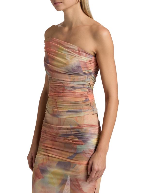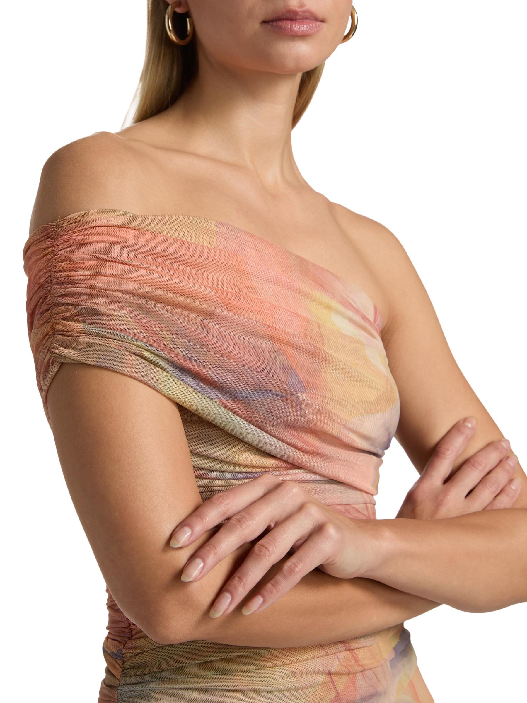 تم تصميم بلوزة Verna من Ronny Kobo للحصول على شكل مناسب يبرز من خلال الكشكشة على طول الدرزات الجانبية. يضفي غطاء واحد مكشوف الكتفين شكلًا إضافيًا على هذه القطعة المطبوعة التجريدية.