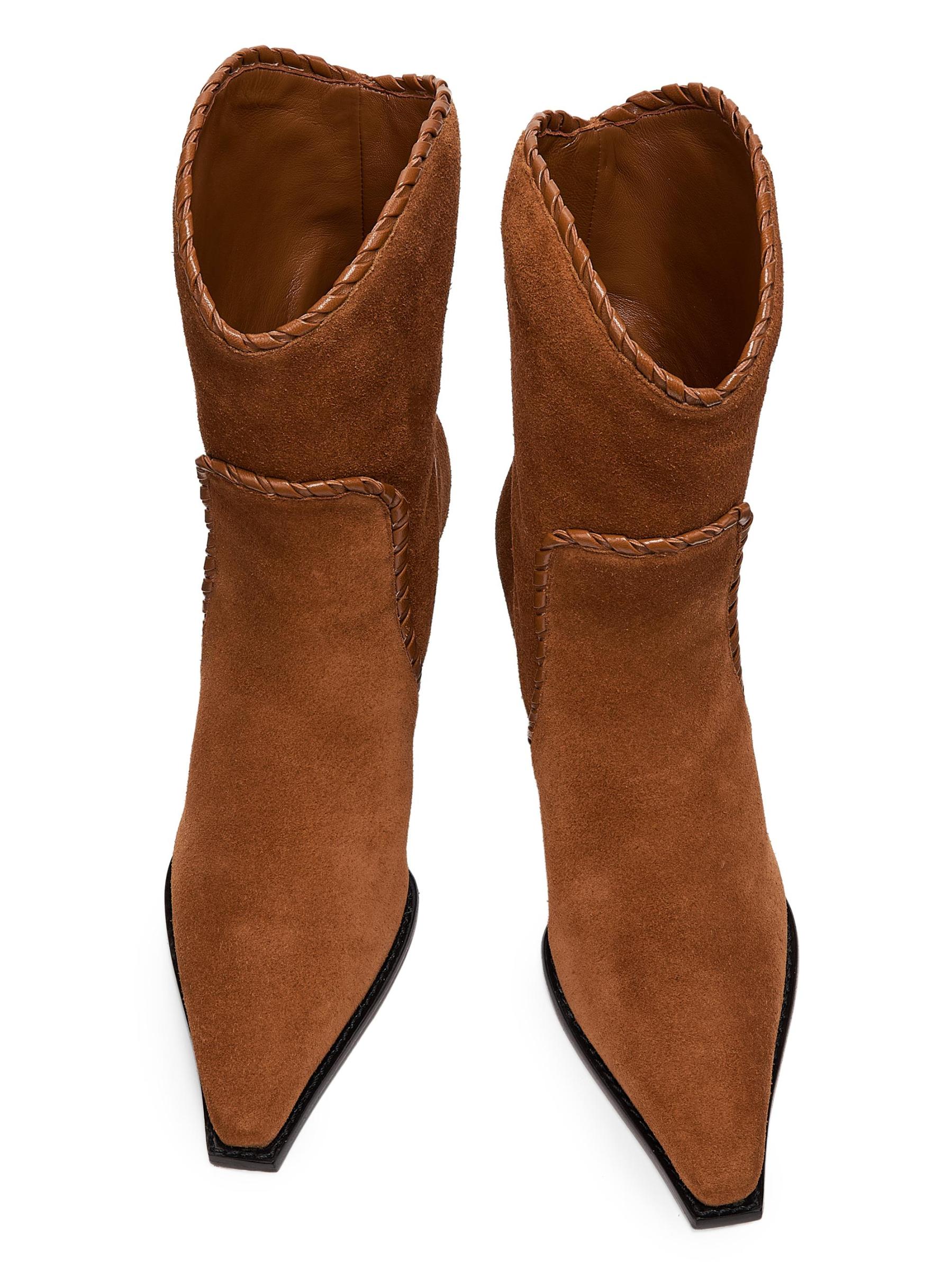 يُبرز حذاء Victoria Saddle من ألكسندر بيرمان الجلد السويدي الإيطالي الفاخر مع درزات مزركشة ومقدمة مربعة الشكل.