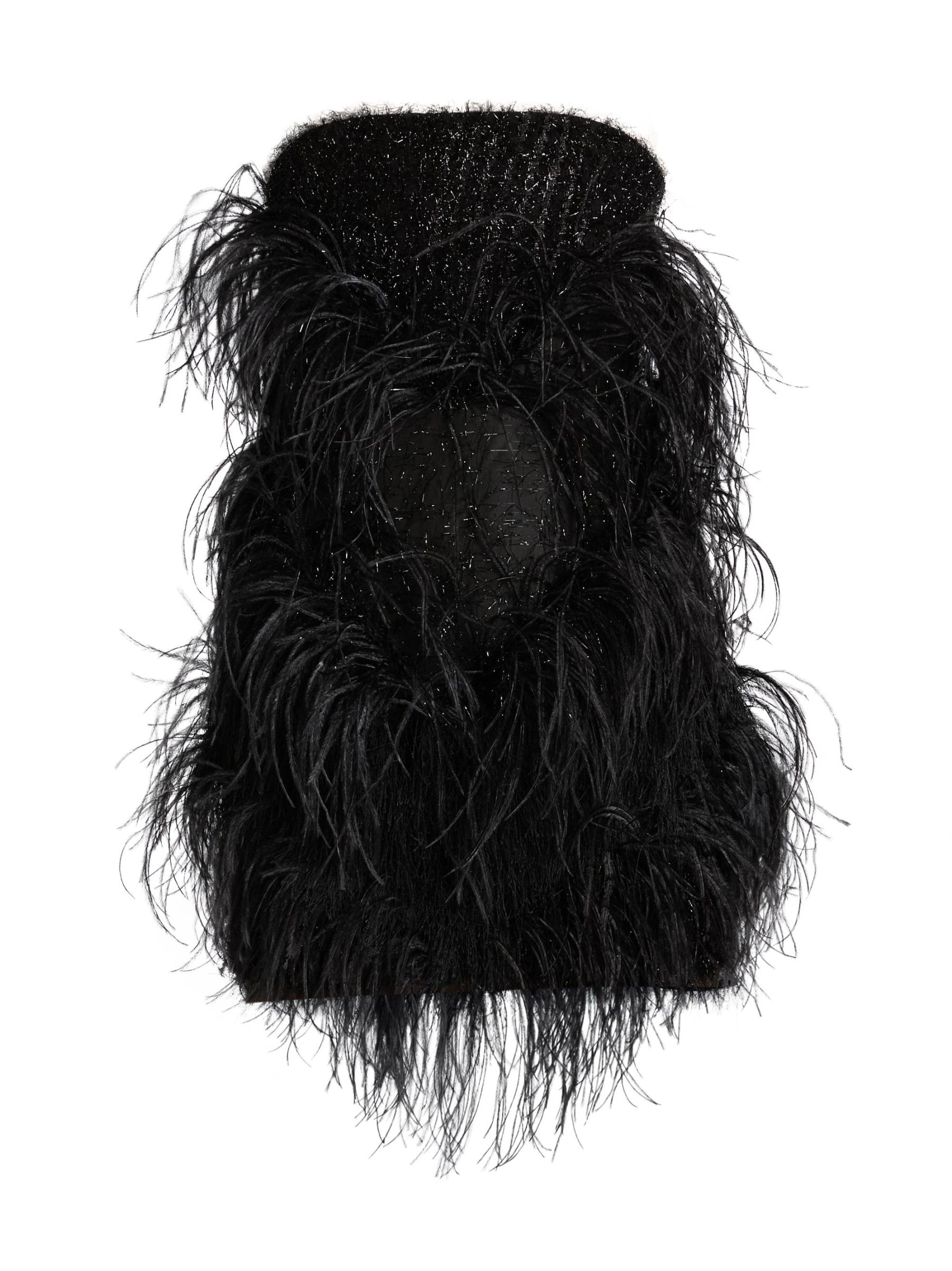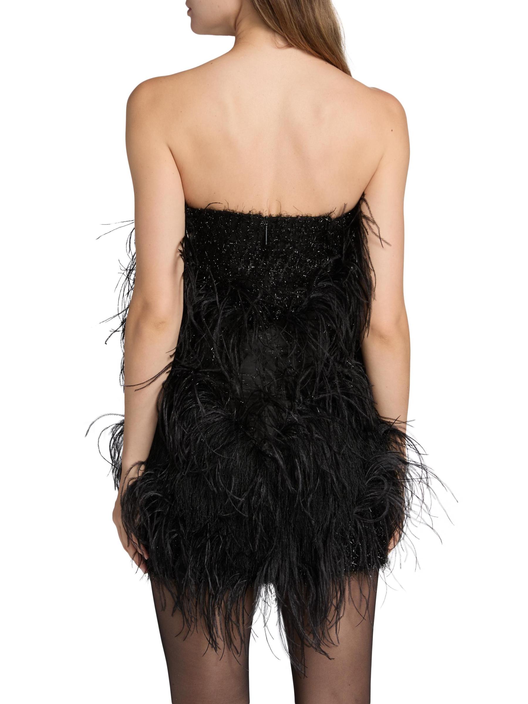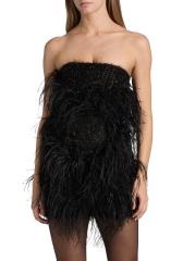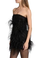 فستان قصير بدون حمالات مزيّن بالريش من Visea
